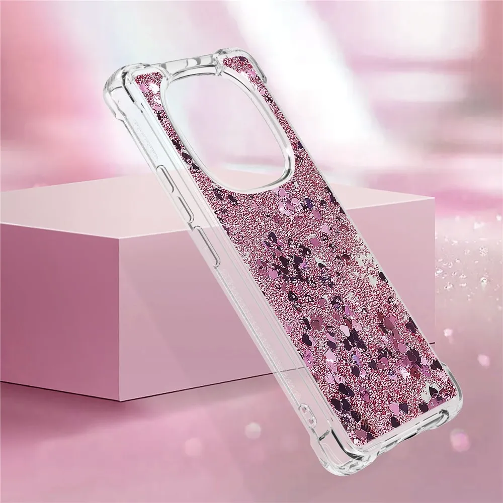 Glitter Prosýpací gélový obal na Xiaomi Redmi Note 14 Pro 5G/Poco X7 5G - ružovozlatý/srdiečka