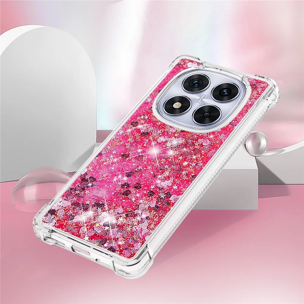 Glitter Prosýpací gélový obal na Xiaomi Redmi Note 14 Pro 5G/Poco X7 5G - ružový/srdiečka