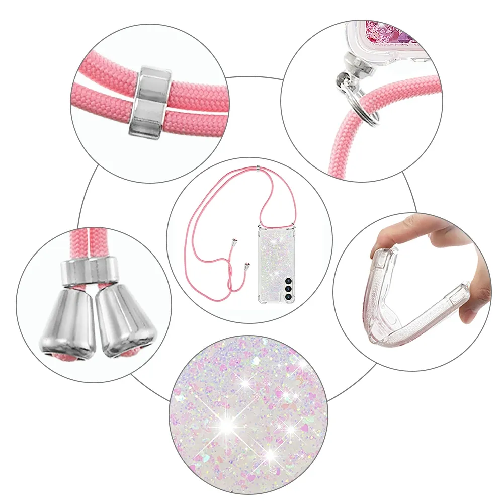 ✅【Vylepšená ochrana proti pádu】 Mäkká TPU hrana obklopujúca púzdro Glitters so šnúrkou na mobil Samsung Galaxy S26+ - ružovostrieborné so srdiečkami poskytuje vynikajúcu ochranu proti pádu a prevencii pádu a zaisťuje, že váš telefón zostane v bezpečí pred náhodnými nárazmi. ✅【Presýpací trblietavý dizajn】 Trblietavé flitre v kvapaline sa voľne pohybujú a vytvárajú fascinujúci efekt ako hviezdy plávajúce vo vode, vďaka čomu je puzdro na telefón zábavné aj módne.