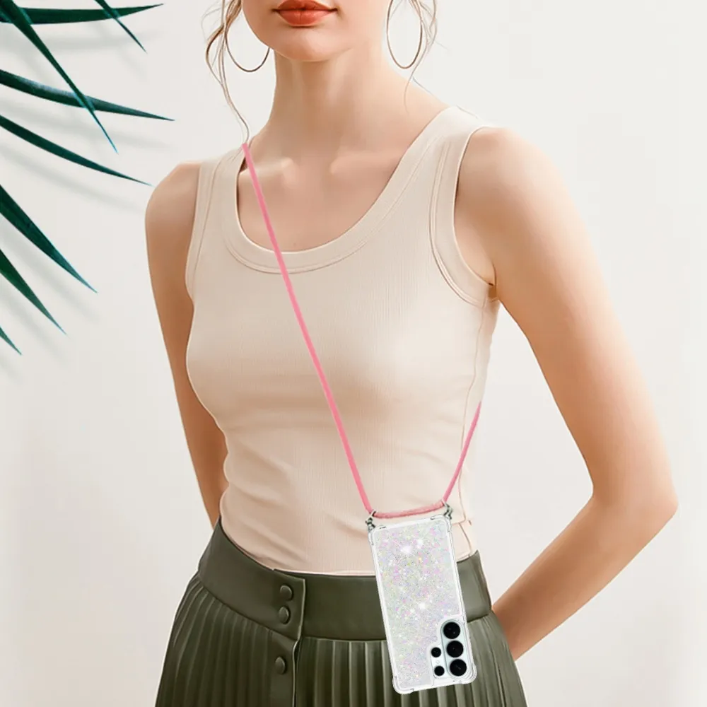 ✅【Vylepšená ochrana proti pádu】 Mäkká TPU hrana obklopujúca púzdro Glitters so šnúrkou na mobil Samsung Galaxy S26 Ultra - ružovostrieborné so srdiečkami poskytuje vynikajúcu ochranu proti pádu a prevencii pádu a zaisťuje, že váš telefón zostane v bezpečí pred náhodnými nárazmi. ✅【Presýpací trblietavý dizajn】 Trblietavé flitre v kvapaline sa voľne pohybujú a vytvárajú fascinujúci efekt ako hviezdy plávajúce vo vode, vďaka čomu je puzdro na telefón zábavné aj módne.