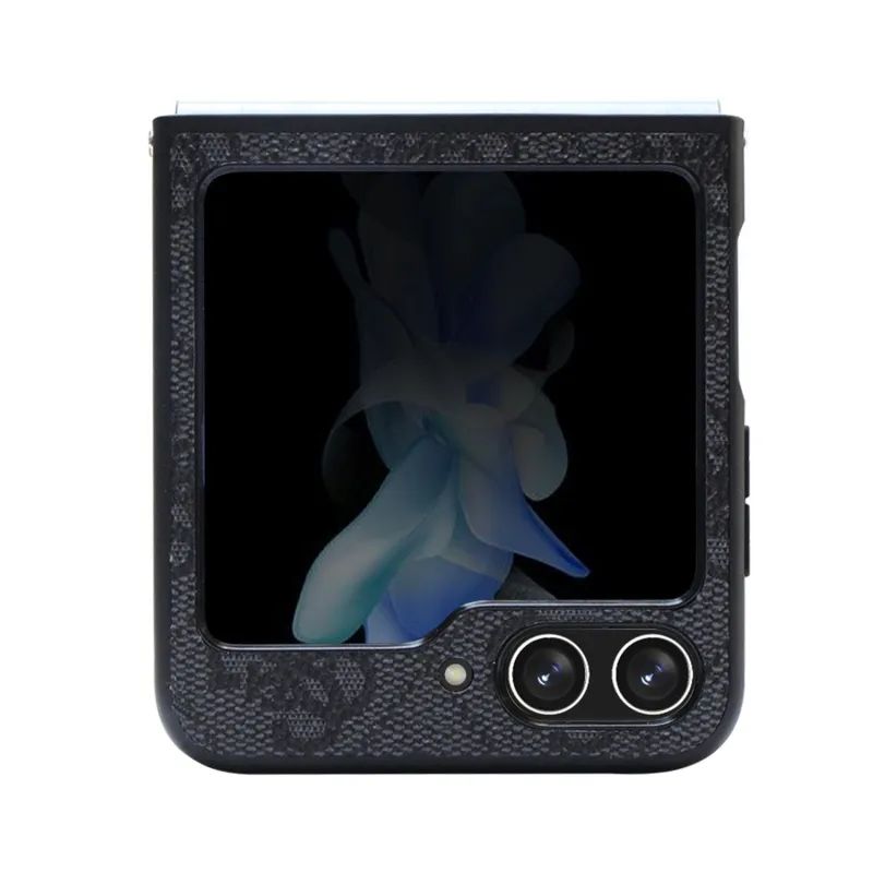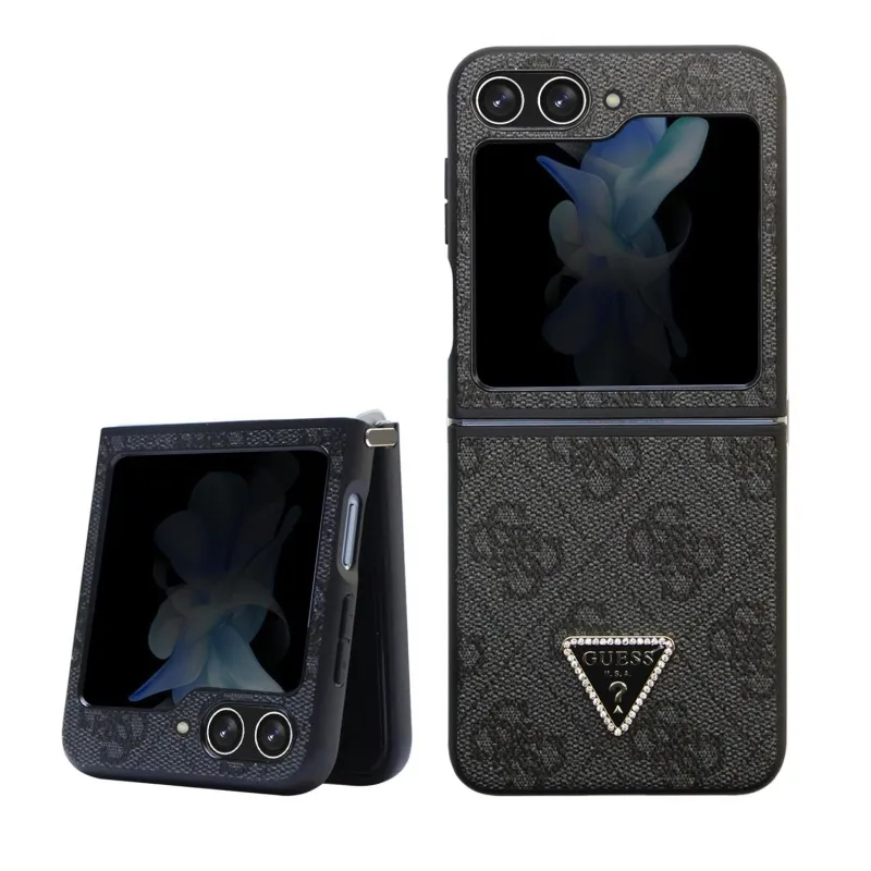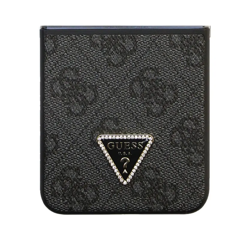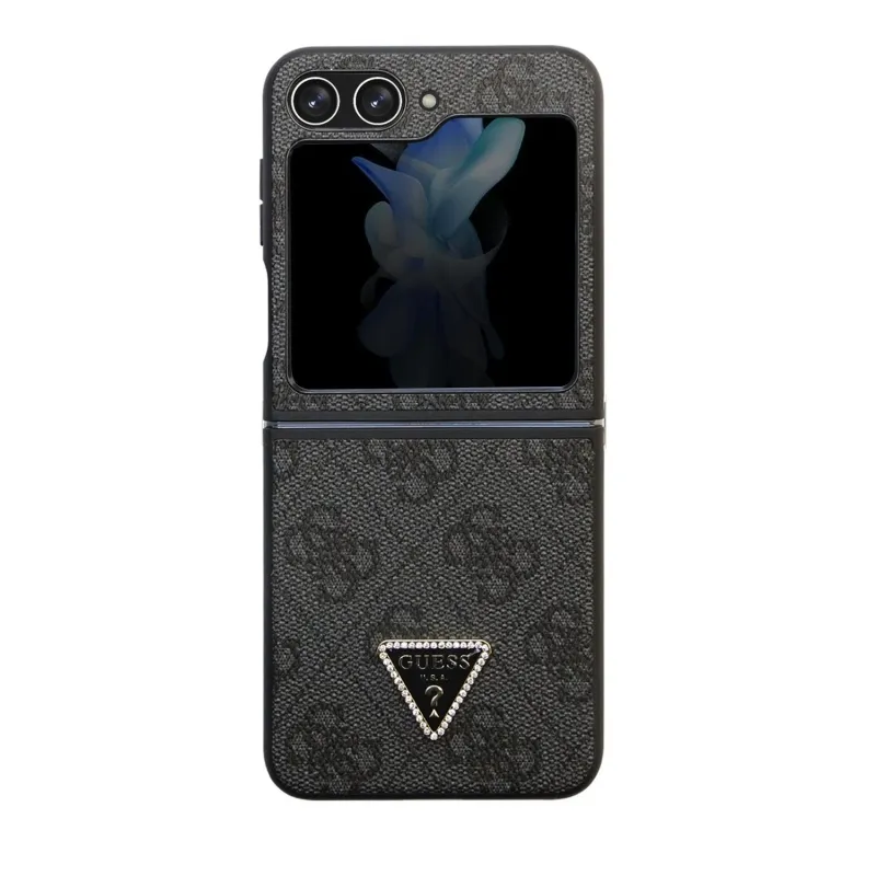 Guess 4G PU Leather Triangle Zadný Kryt pre Samsung Galaxy Z Flip 5 Black