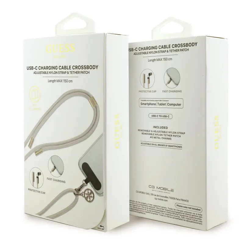 Guess Crossbody Strap 4G Charm s nabíjacím káblom USB-C/USB-C béžová