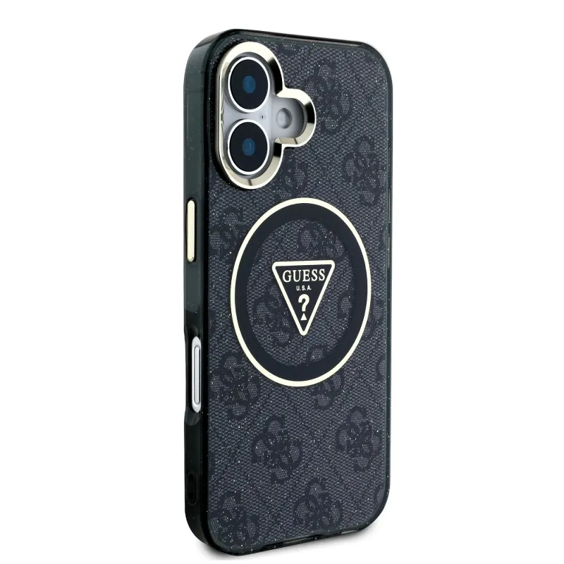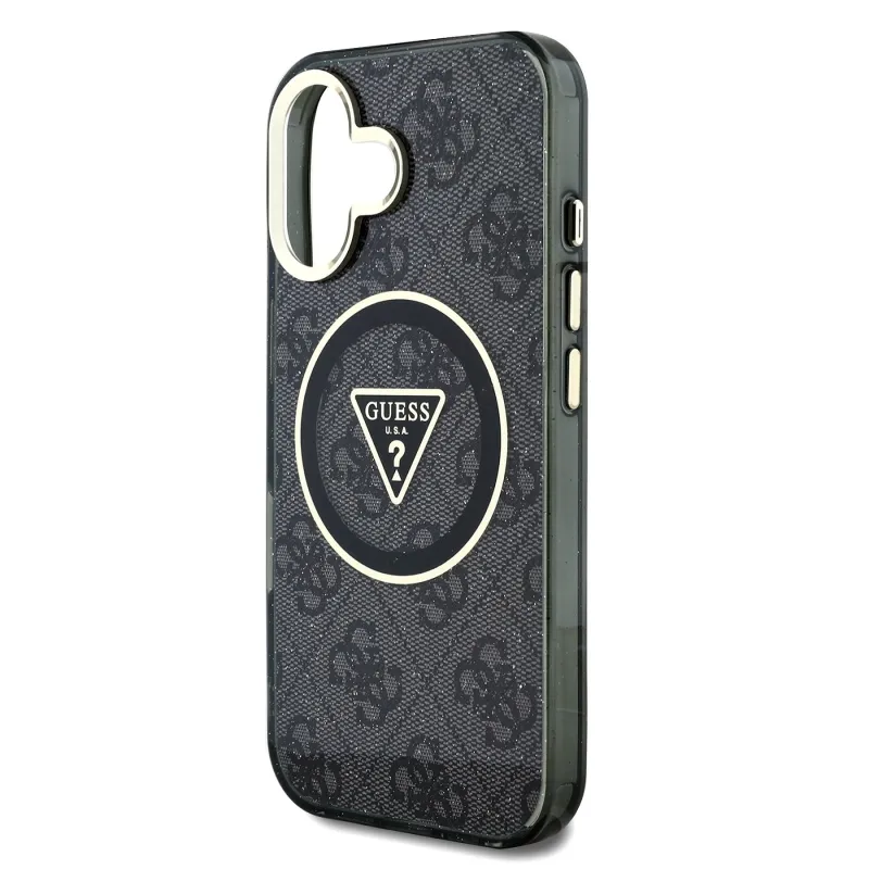 Guess IML 4G Glitter and Triangle Logo MagSafe Back Cover pre iPhone 16 Black