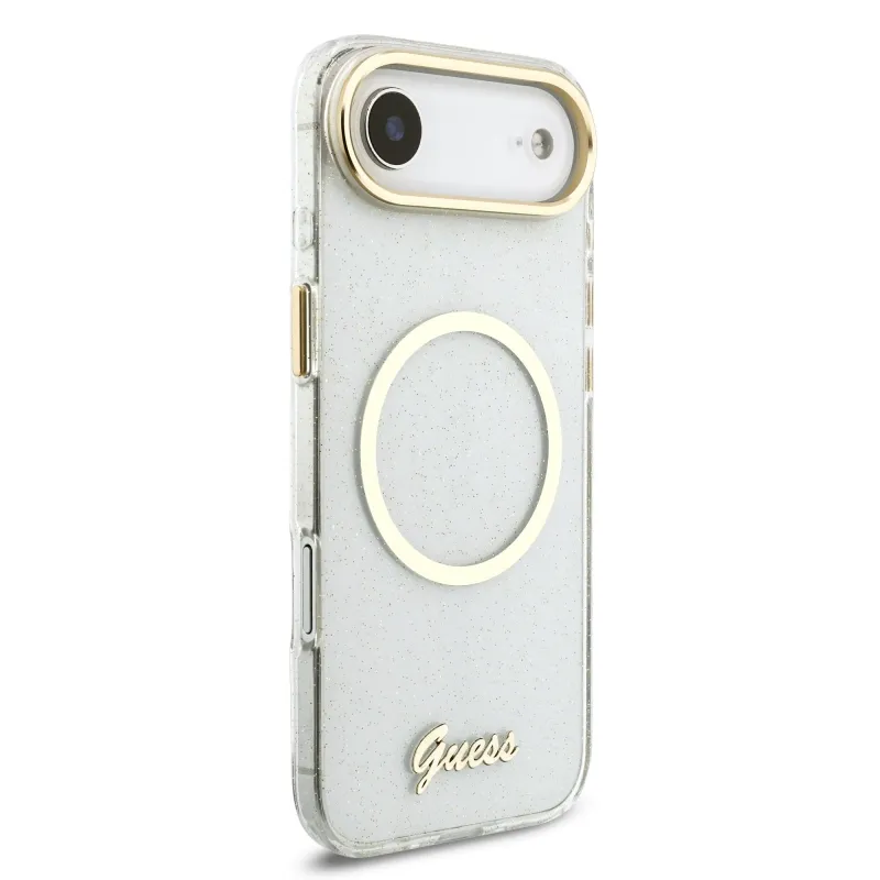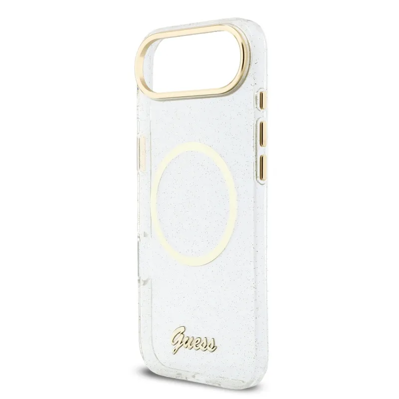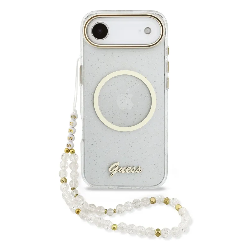 Guess IML Glitter Script Strap MagSafe zadný kryt pre iPhone Air Transparent