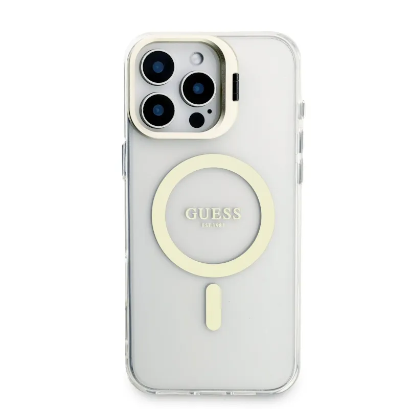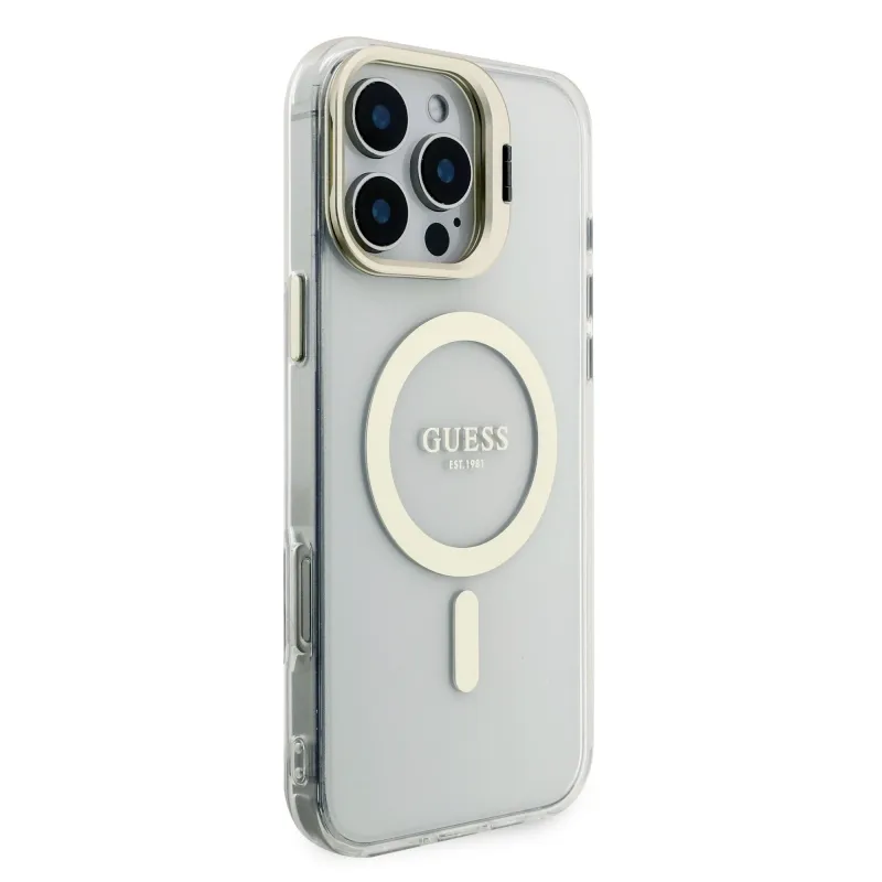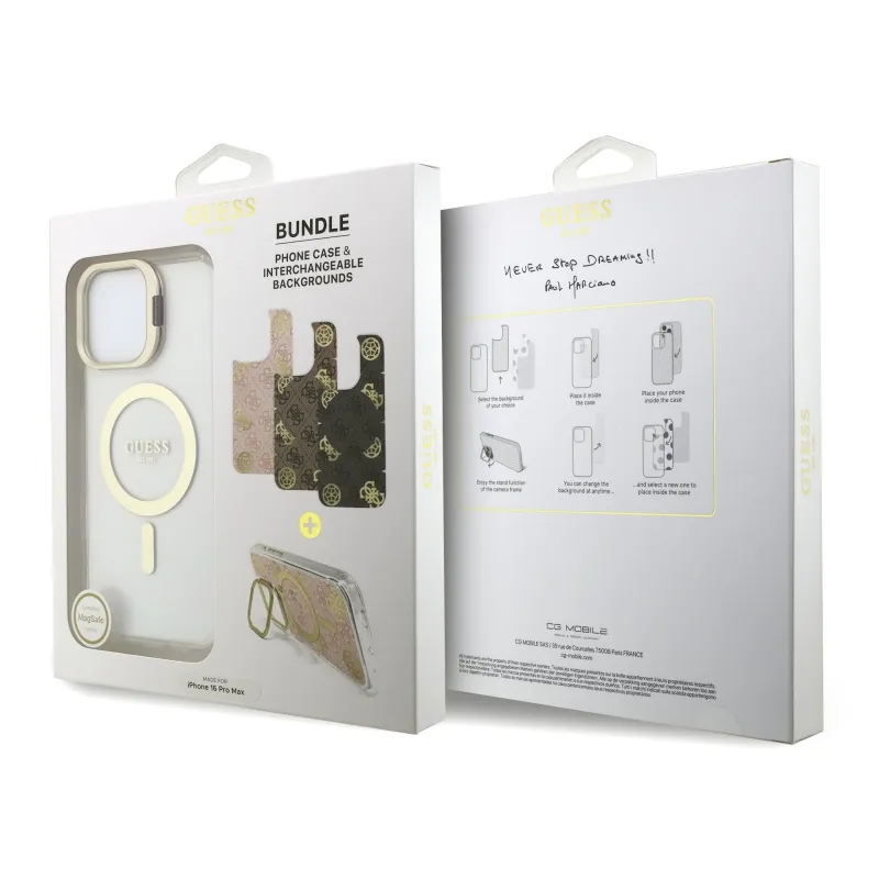 Guess PC/TPU galvanizovaný stojan Camera Frame Back Cover s odnímateľným pozadím pre iPhone 16 Pro Max