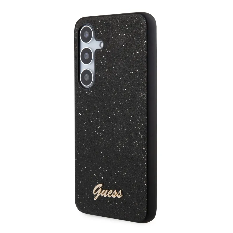 Guess PC/TPU Glitter Flakes Metal Logo Zadný Kryt pre Samsung Galaxy S24 Black