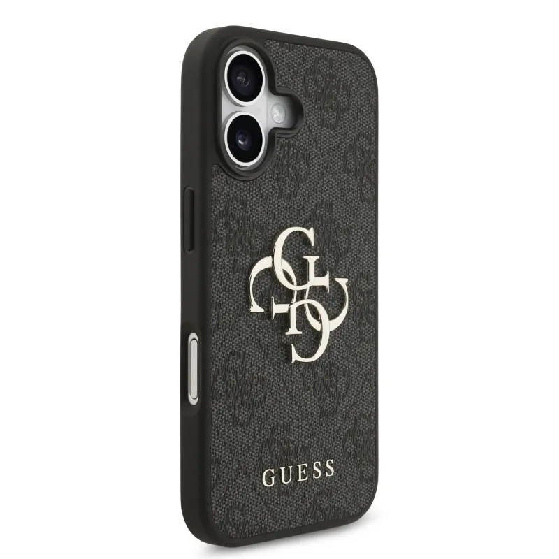 Guess PU 4G Kovový zadný kryt s logom pre iPhone 17 Grey