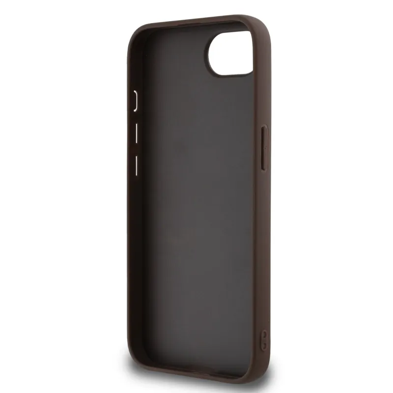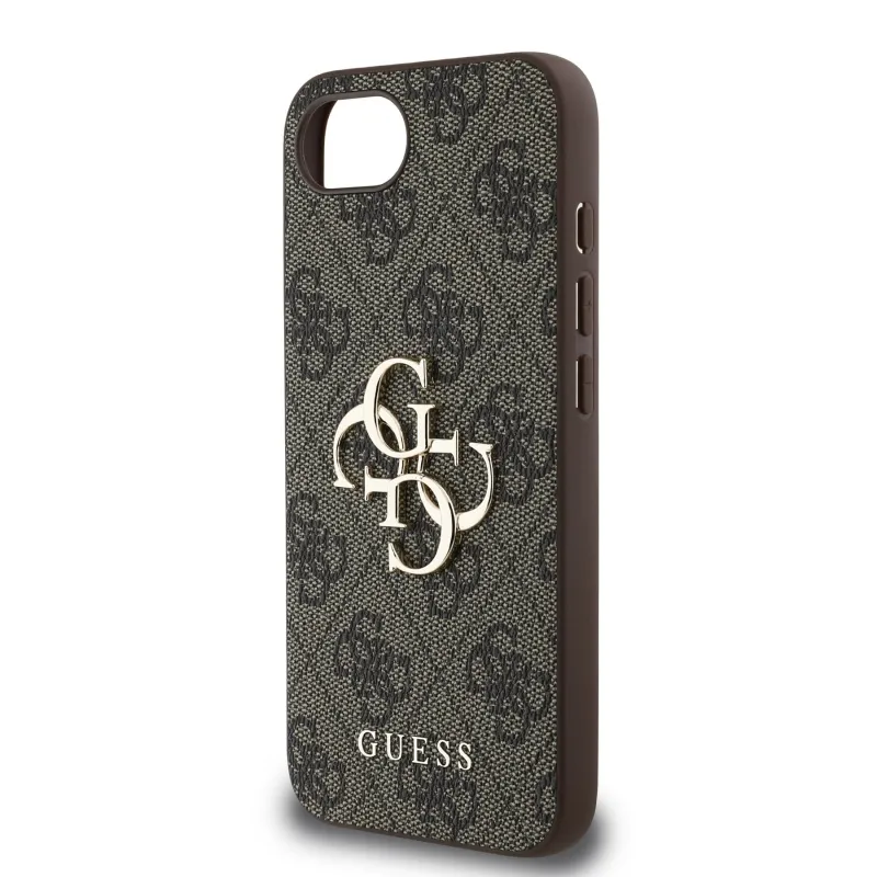 Guess PU 4G Kovový zadný kryt s logom pre iPhone SE4 Brown