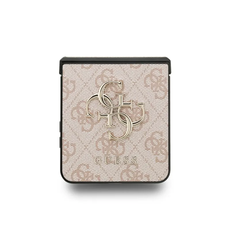 Guess PU 4G Kovový zadný kryt s logom pre Samsung Galaxy Z Flip 7 Pink