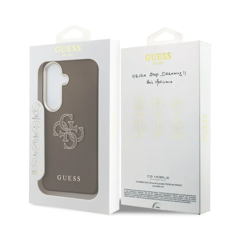 Guess PU 4G Resin Metal Logo Zadný kryt pre Samsung Galaxy S26 Brown