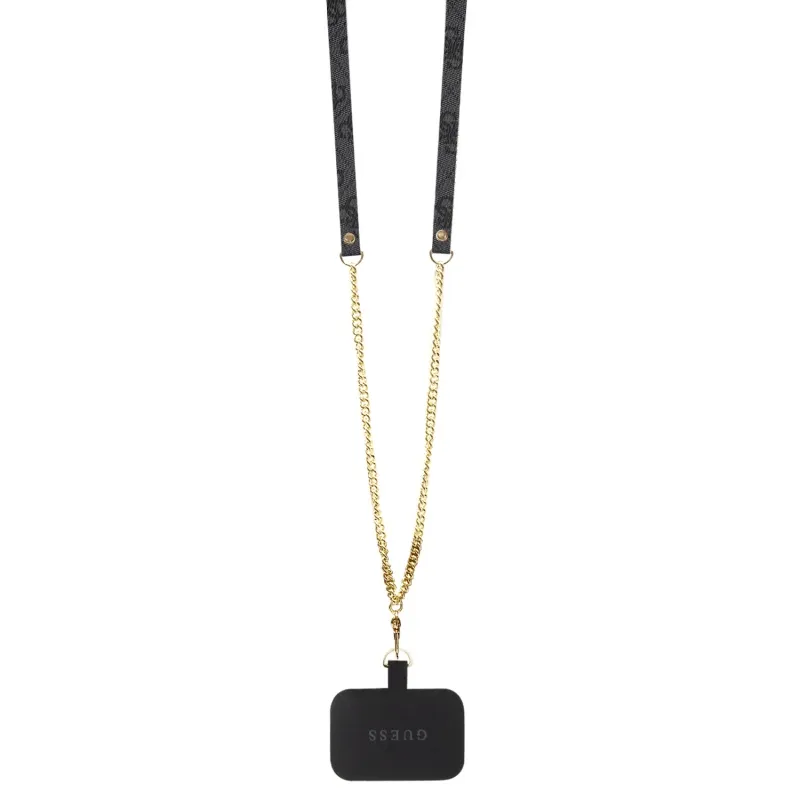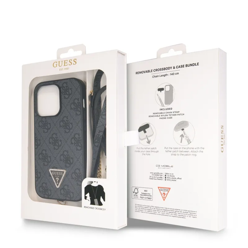 Guess PU 4G Strass Triangle Metal Logo Zadný Kryt + Crossbody Popruh pre iPhone 15 Pro Max Black