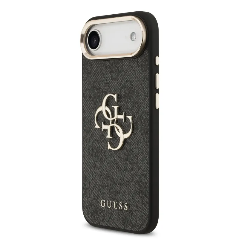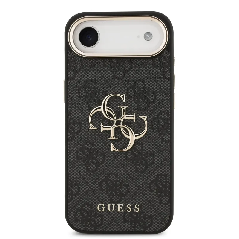 Guess PU kožený 4G kovové logo Gold Frame zadný kryt pre iPhone Air Black