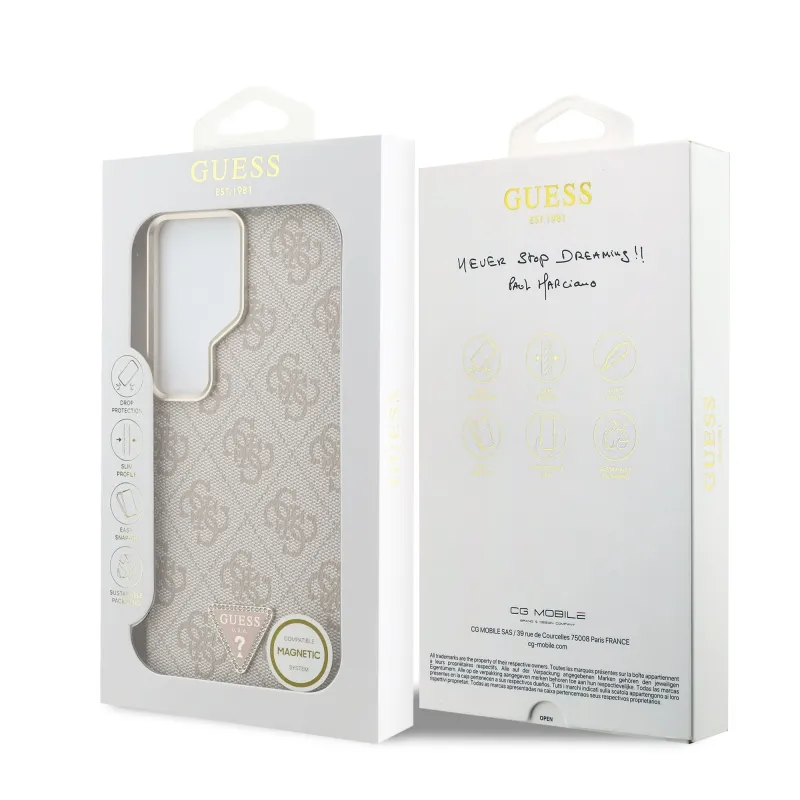 Guess PU kožený 4G Strass Triangle Triangle Logo Gold Frame Magnetický zadný kryt pre Samsung Galaxy S26 Ultra Pink