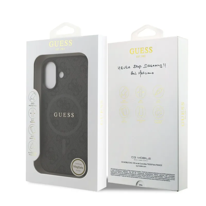 Guess PU kožený zadný kryt 4G Colored Ring MagSafe pre iPhone 17 Black