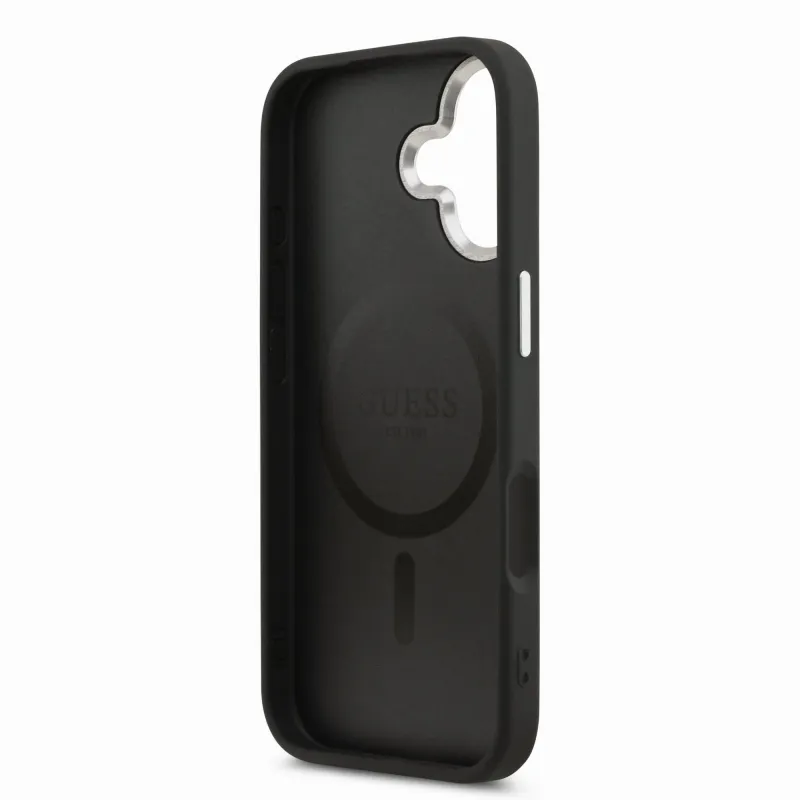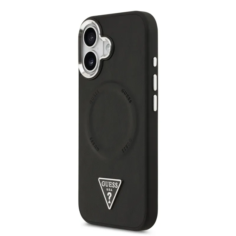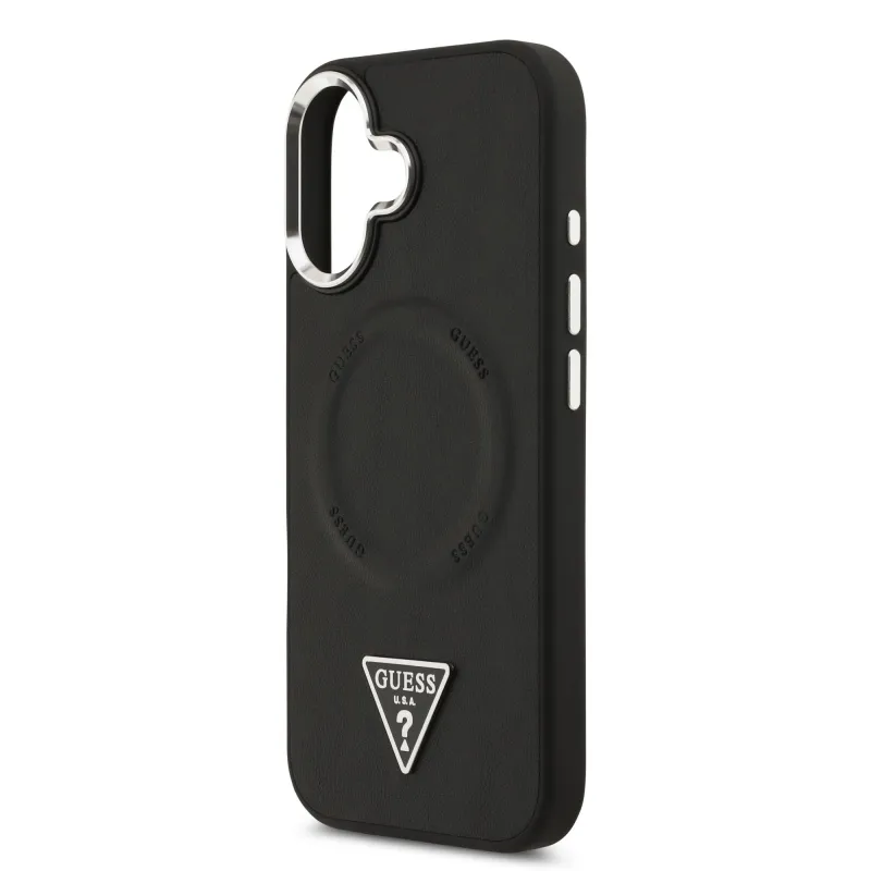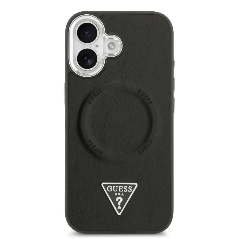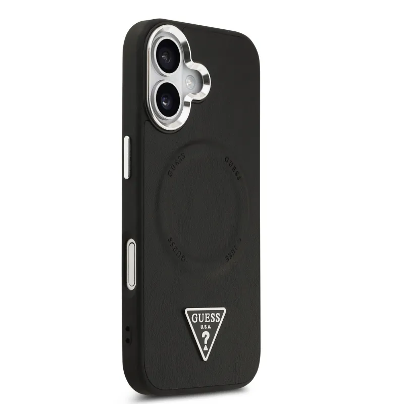 Guess PU kožený zadný kryt MagSafe s trojuholníkovým logom pre iPhone 17 Black