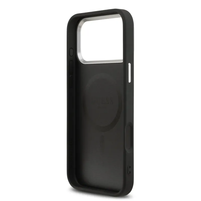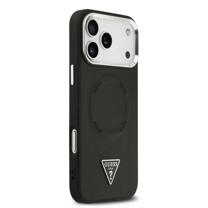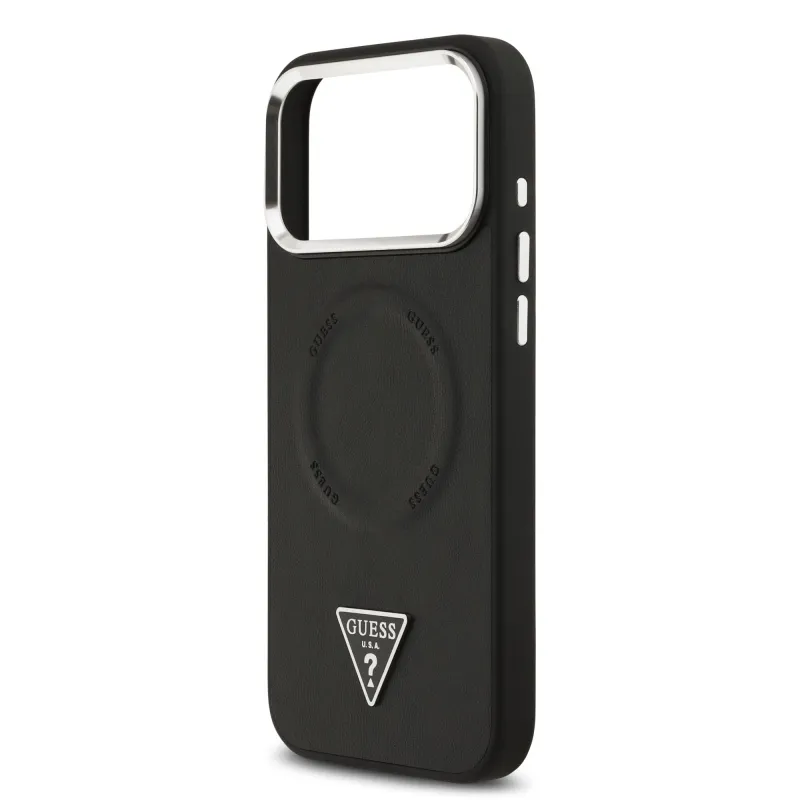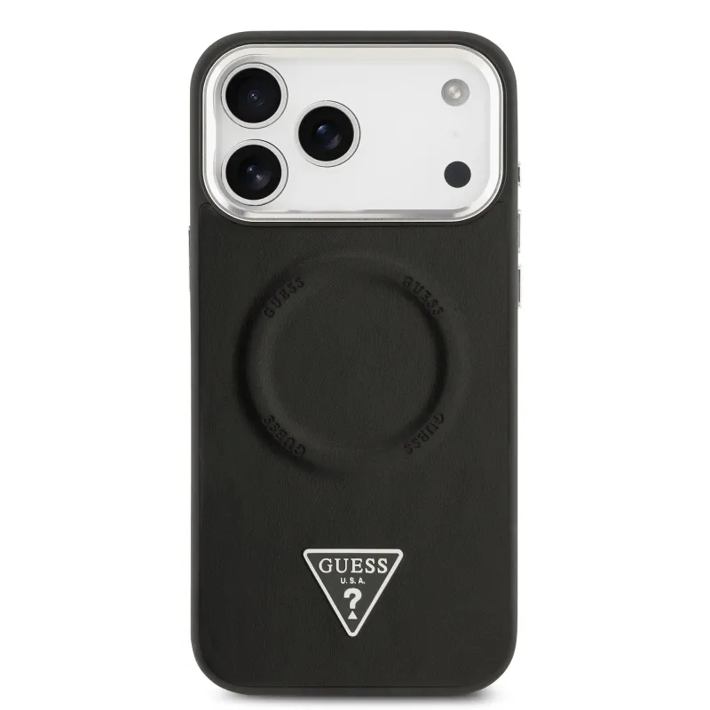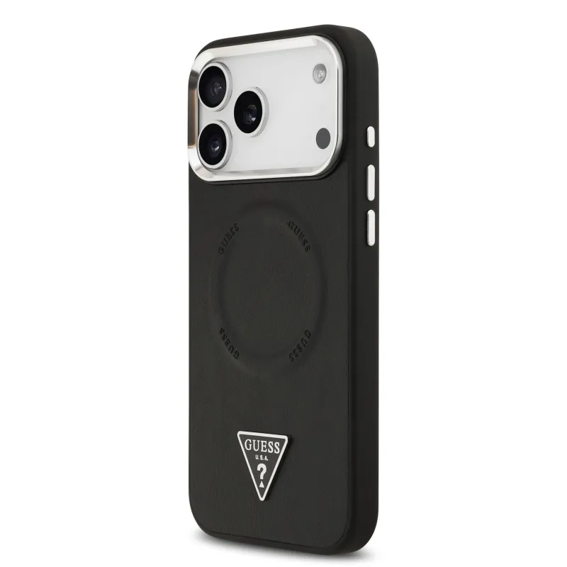 Guess PU kožený zadný kryt MagSafe s trojuholníkovým logom pre iPhone 17 Pro Black