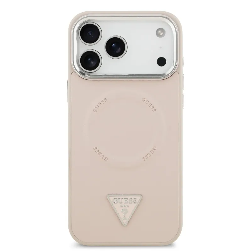 Guess PU kožený zadný kryt MagSafe s trojuholníkovým logom pre iPhone 17 Pro Pink