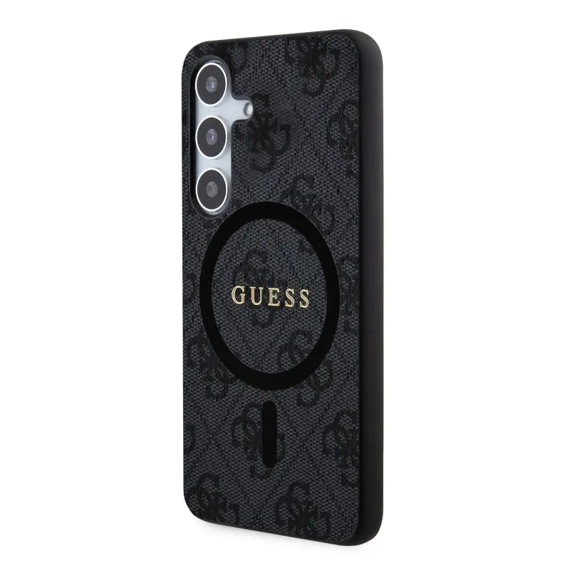 Guess PU Leather 4G Colored Ring MagSafe Zadný Kryt pre Samsung Galaxy S24 Black
