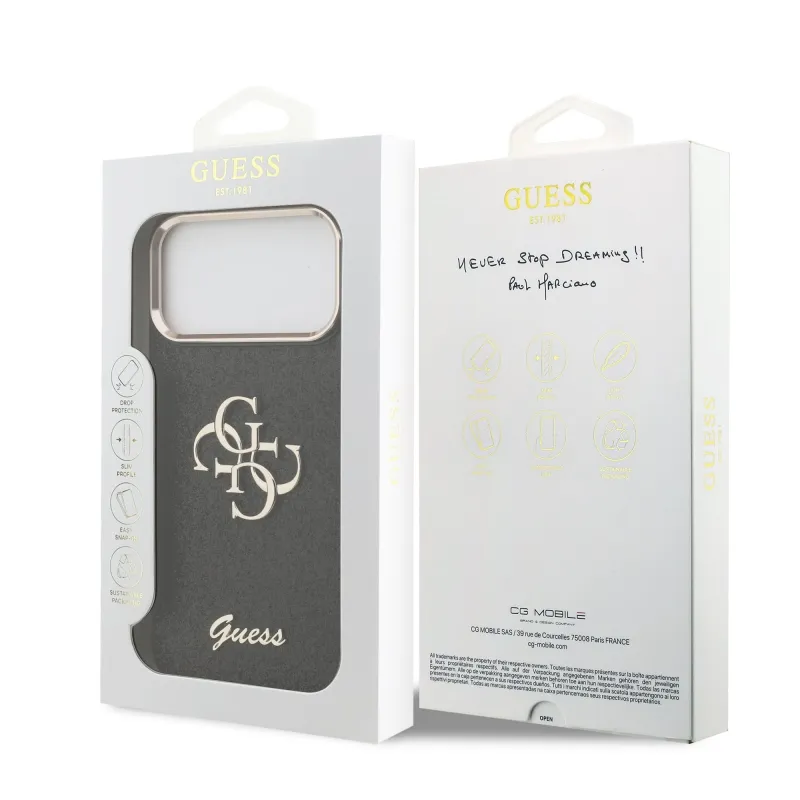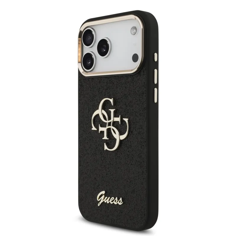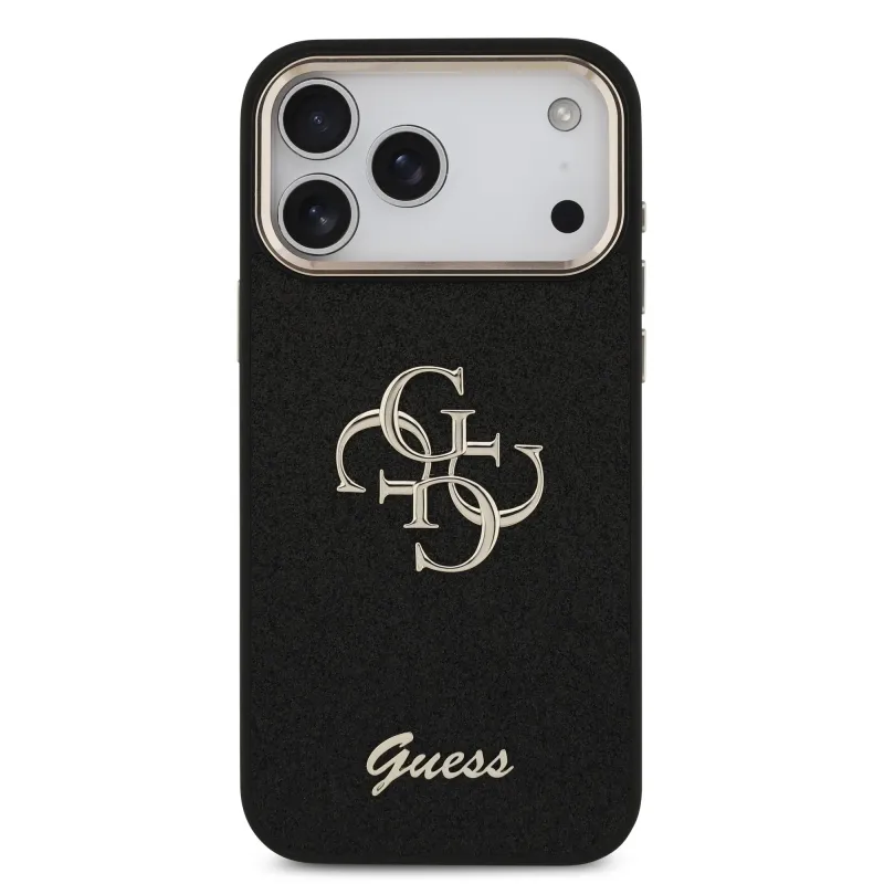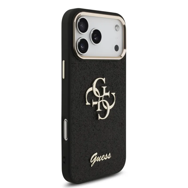 Guess PU Pevný zadný kryt 4G s kovovým rámom pre iPhone 17 Pro Max Black