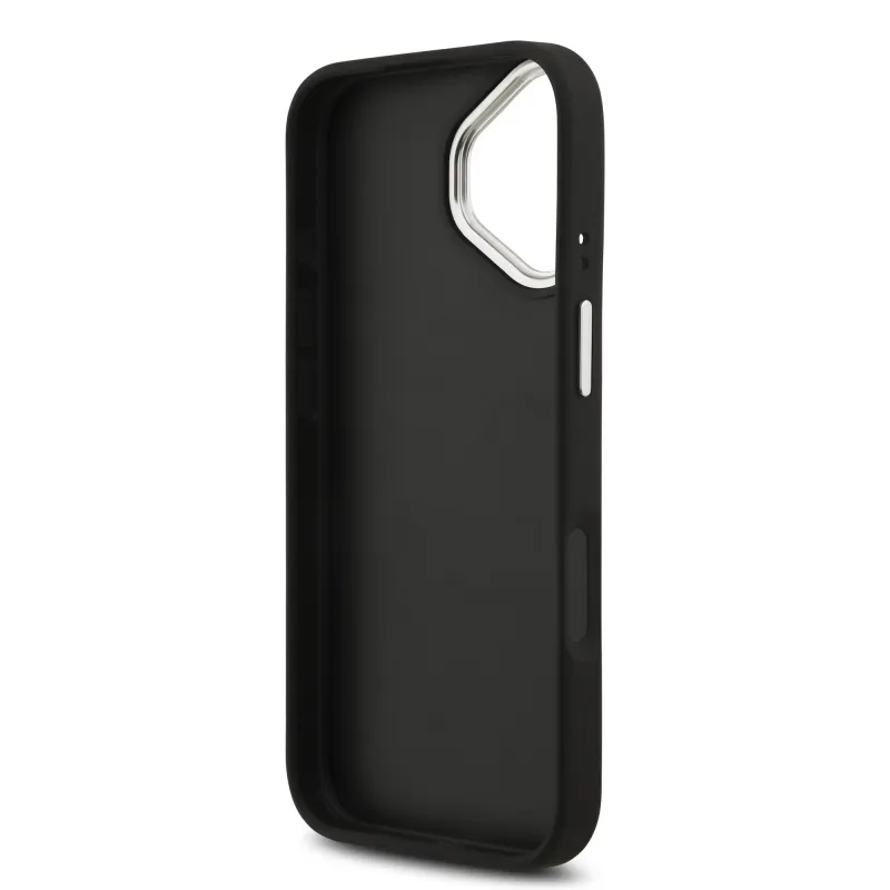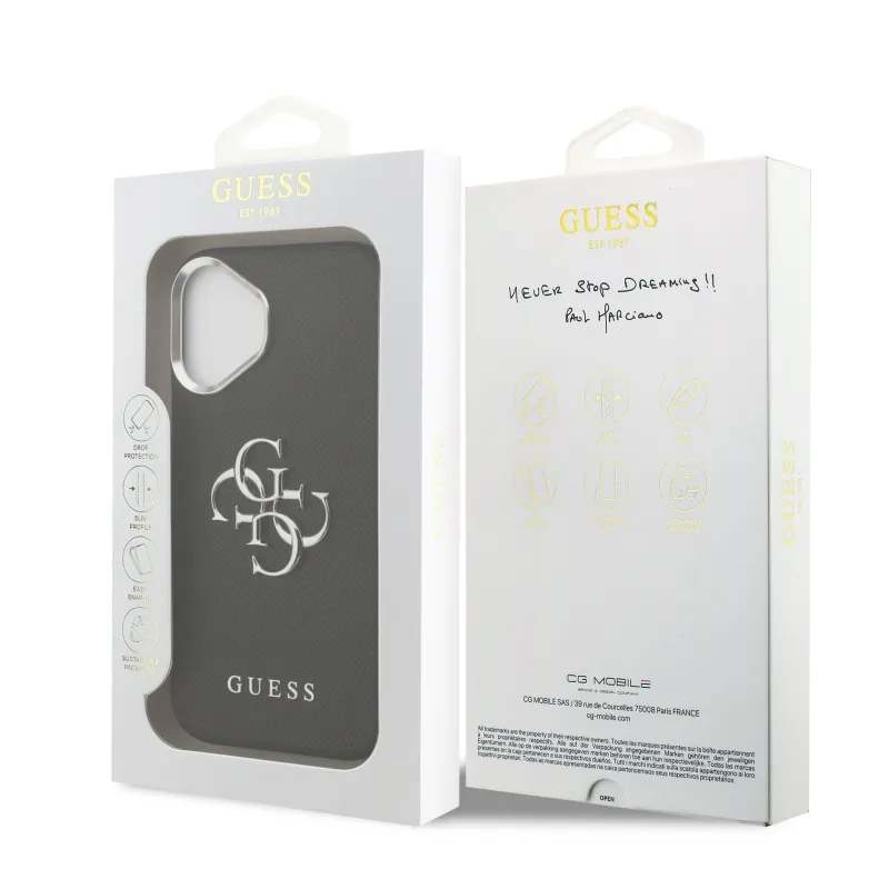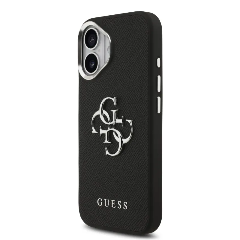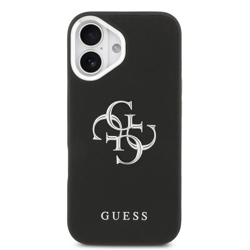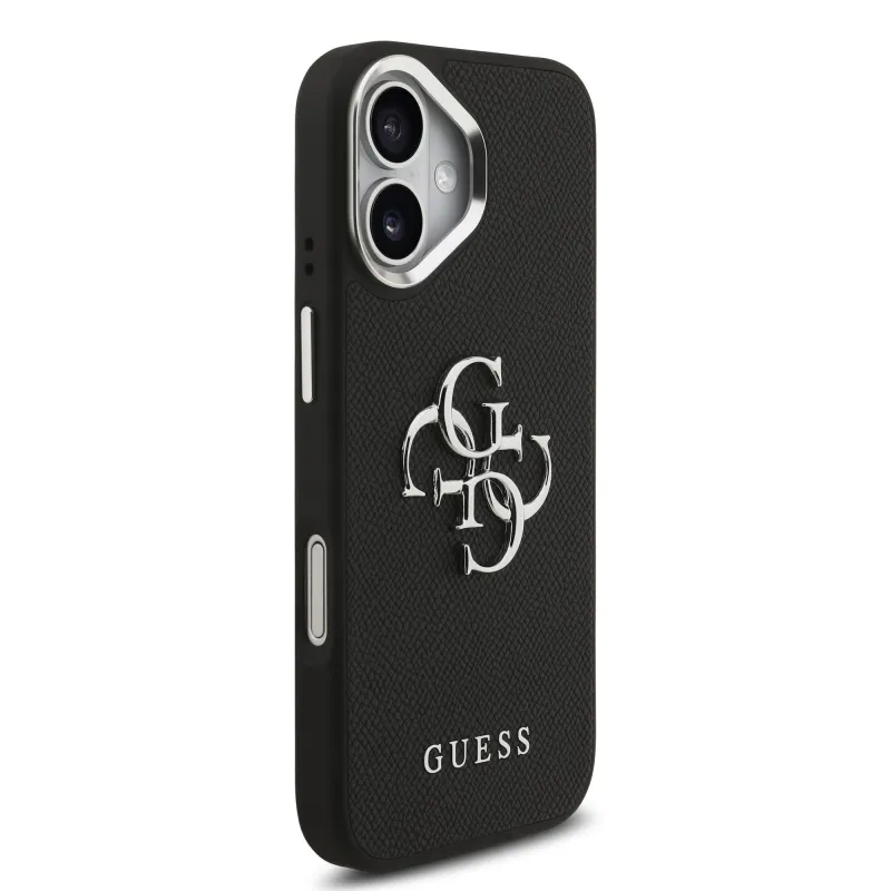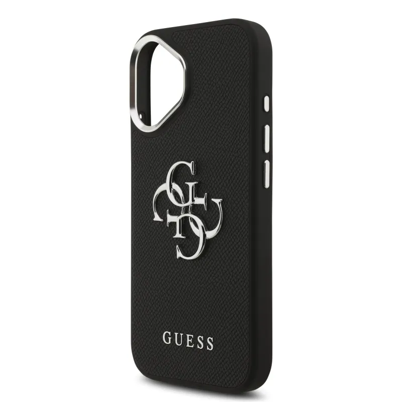Guess PU zrnitý 4G kovový zadný kryt s logom pre iPhone 17 Black