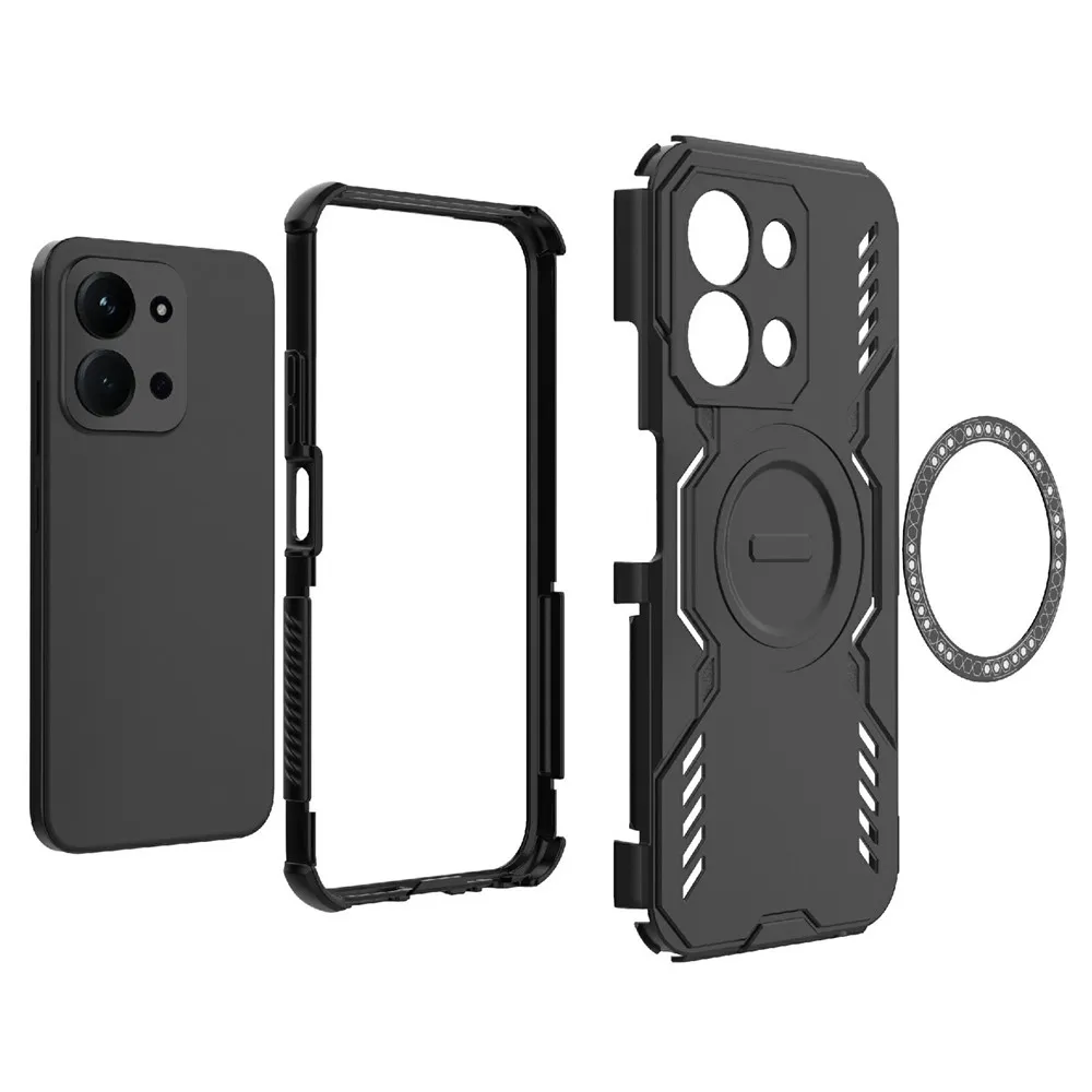 Čierny odolný obal Hollow s MagSafe na mobil Xiaomi Redmi 15C 4G (171mm) / Poco C85 4G (171mm)