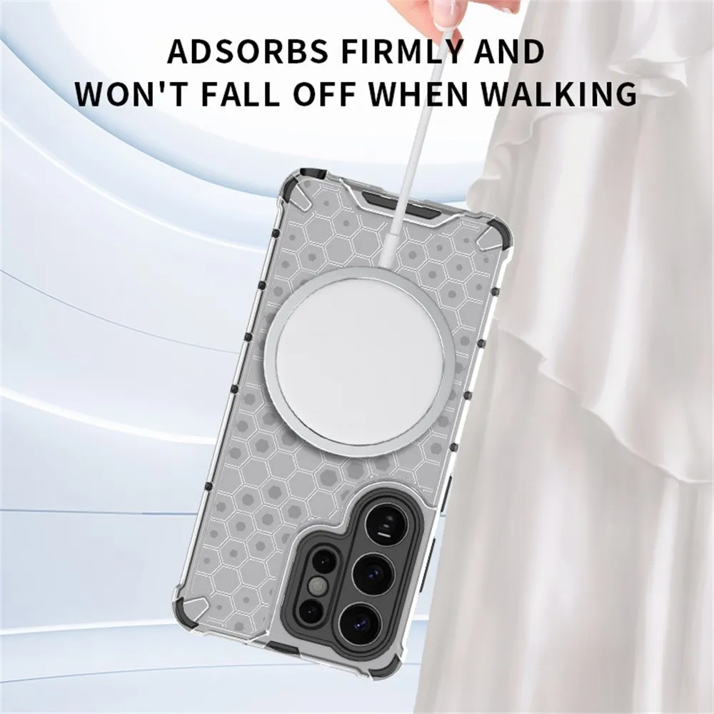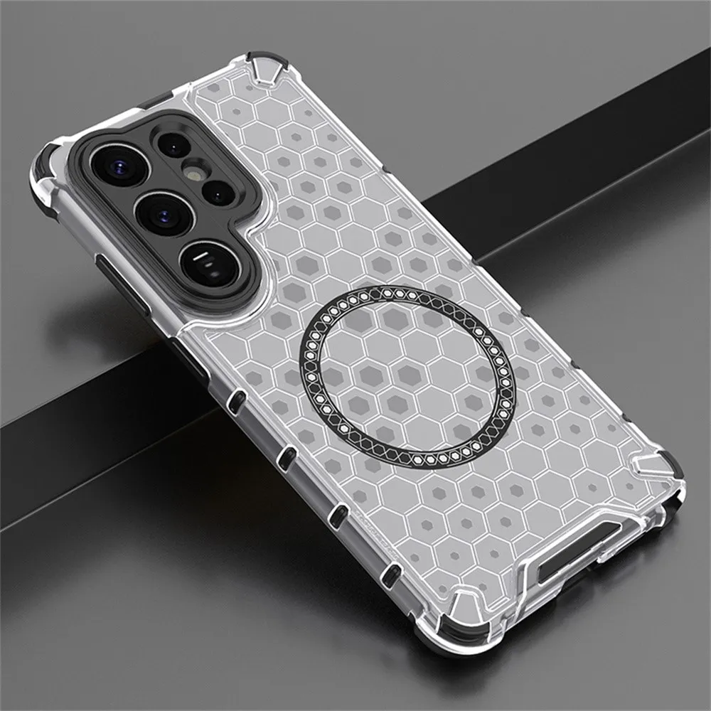 ✅【Hybridná konštrukcia TPU + PC】 Honey odolný kryt s podporou MagSafe na mobil Samsung Galaxy S26 Ultra v priehľadnej farbe je vyrobený z kombinácie materiálov TPU a PC a poskytuje dokonalú rovnováhu medzi mäkkosťou a tvrdosťou a zaisťuje optimálnu ochranu vášho telefónu.
