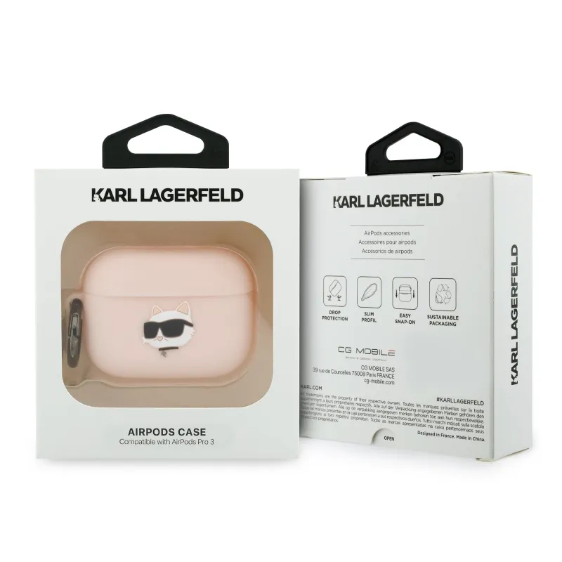Karl Lagerfeld 3D logo NFT Choupette Head Silikónové puzdro pre AirPods Pro 3 Pink