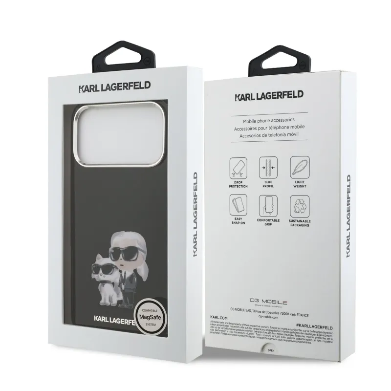 Karl Lagerfeld IML Aquarelle Karl and Choupette Zadný kryt pre iPhone 17 Pro Black