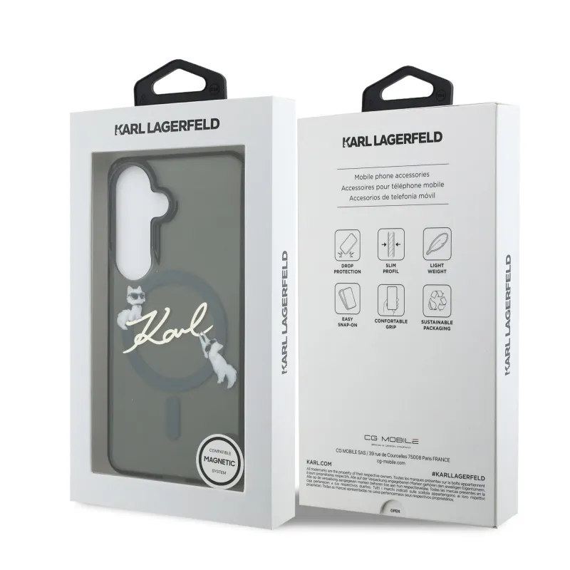 Karl Lagerfeld IML Choupette Karl Script Logo Magnetický zadný kryt pre Samsung Galaxy S26 Black