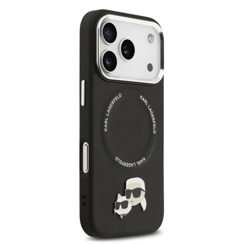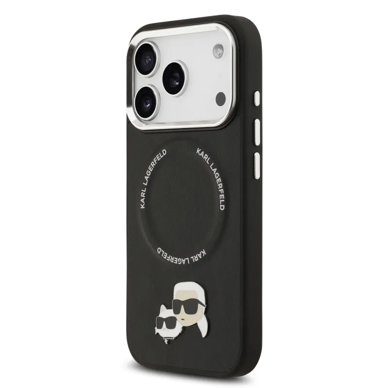 Karl Lagerfeld PU Karl and Choupette Heads Pins MagSafe Back Cover pre iPhone 17 Pro Black