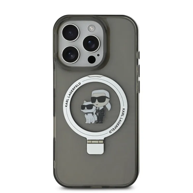 Karl Lagerfeld Ringstand Karl and Choupette MagSafe zadný kryt pre iPhone 16 Pro Black