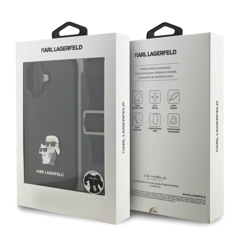 S prémiovým krytem Karl Lagerfeld Saffiano Crossbody Popruh Metal Karl and Choupette získáte nejen elegantní ochranu pro váš telefon, ale také praktický crossbody popruh.