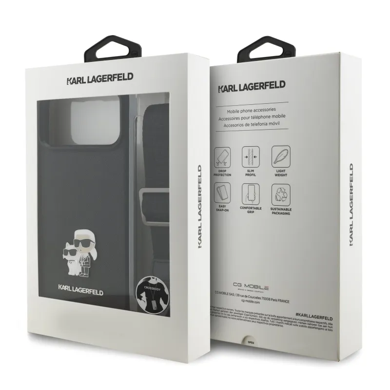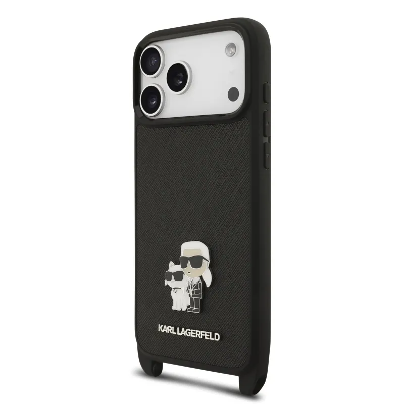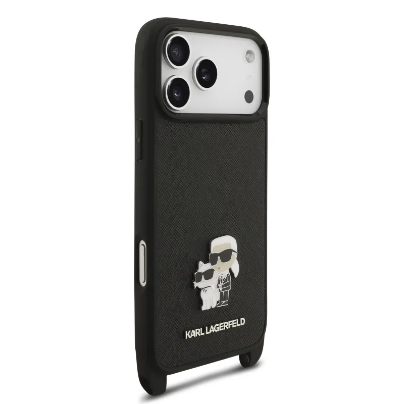 Karl Lagerfeld Saffiano Crossbody Strap Metal Karl and Choupette Zadný kryt pre iPhone 17 Pro Max Black
