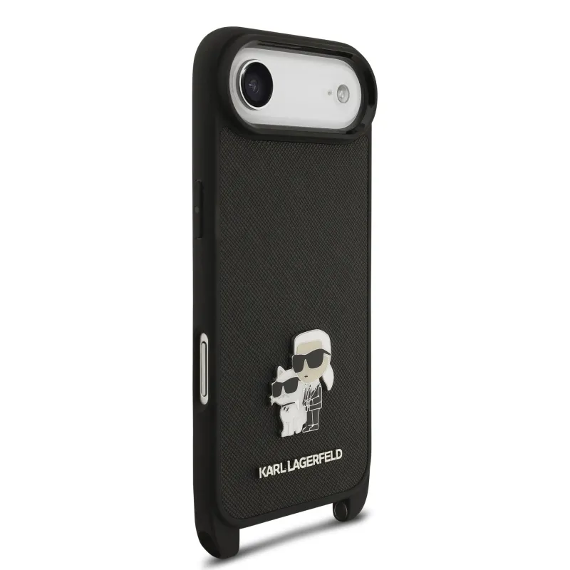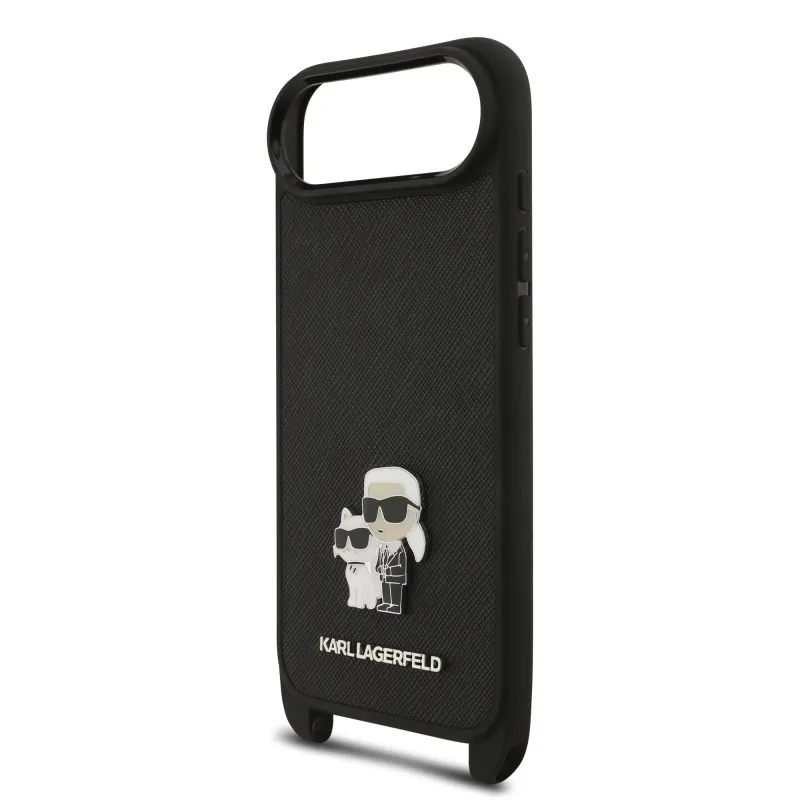 Karl Lagerfeld Saffiano Crossbody Strap Metal Karl and Choupette Zadný kryt pre iPhone Air Black