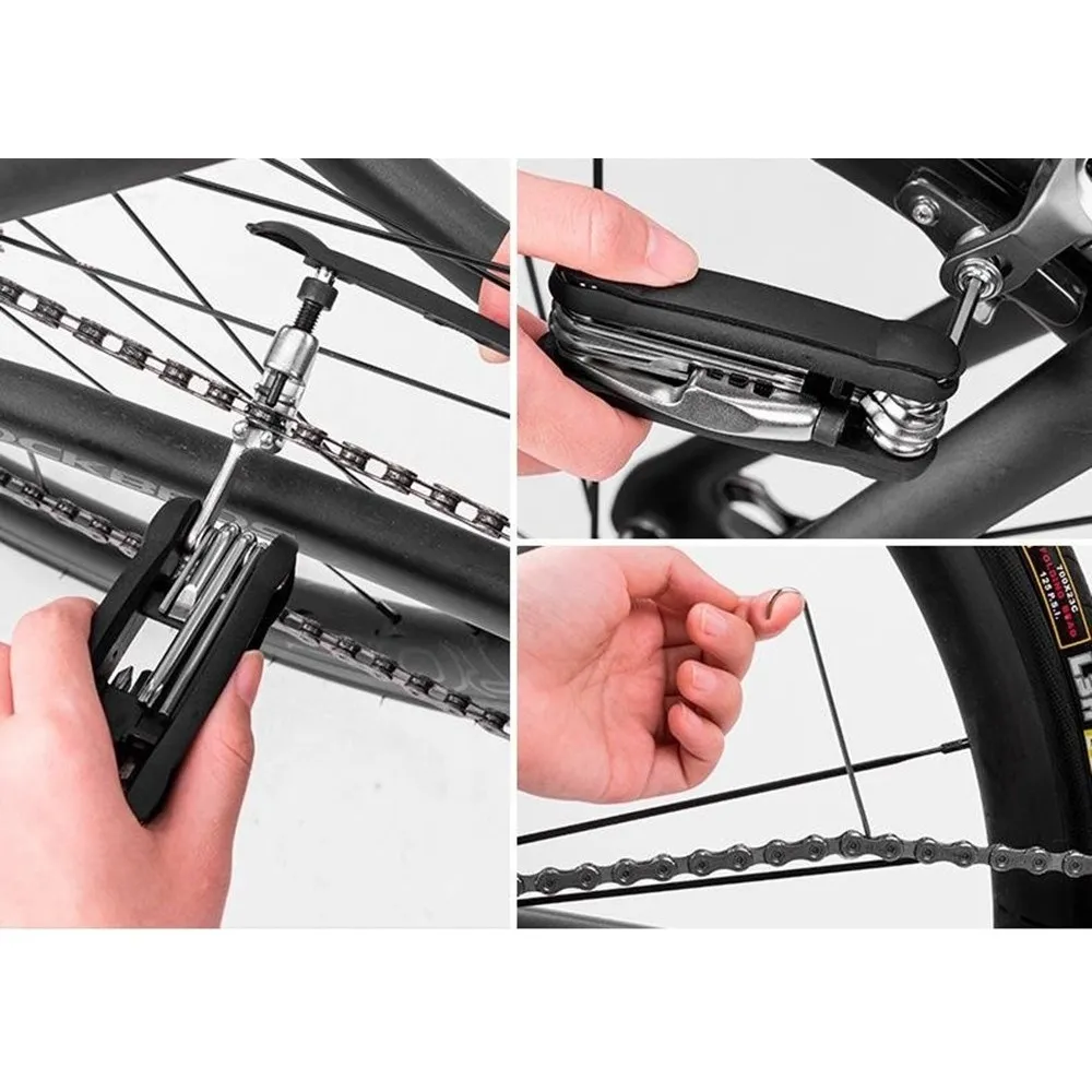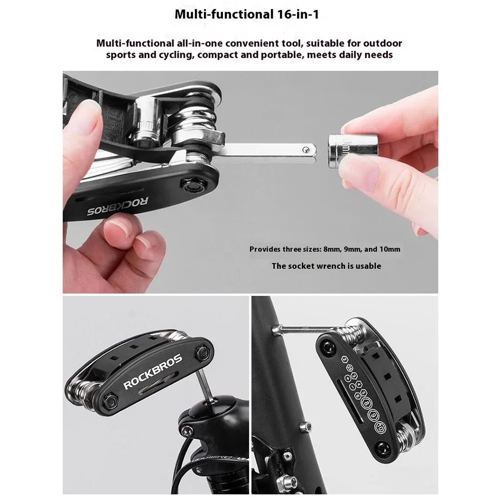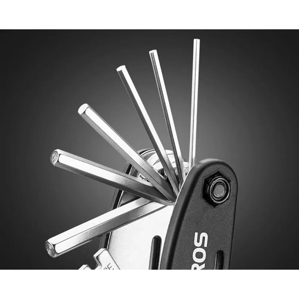 Nečakané drobné poruchy počas jazdy dokážu skomplikovať výlet aj každodenné dochádzanie. Toto multifunkčné cyklo náradie 16 v 1 ponúka širokú škálu nástrojov v jednom kompaktnom tele, ktoré ľahko uložíte do vrecka alebo tašky. Vďaka skladaciemu prevedeniu je vždy pripravené na použitie bez zbytočného zaberania miesta.