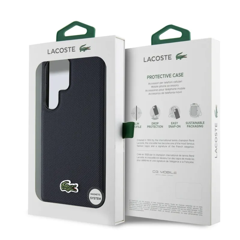 Lacoste Iconic Petit Pique Woven Logo MagSafe zadný kryt pre Samsung Galaxy S25 Ultra Blue