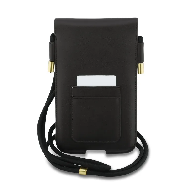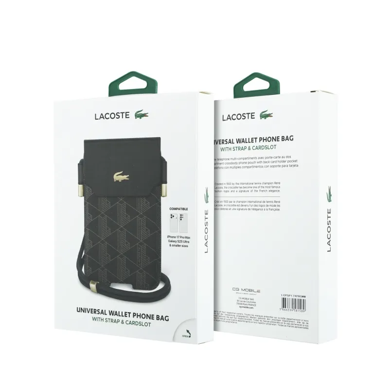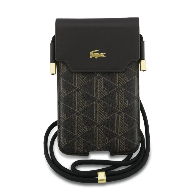 Lacoste PVC zmes Monogram Kovové logo Telefónne vrecko XL Hnedá