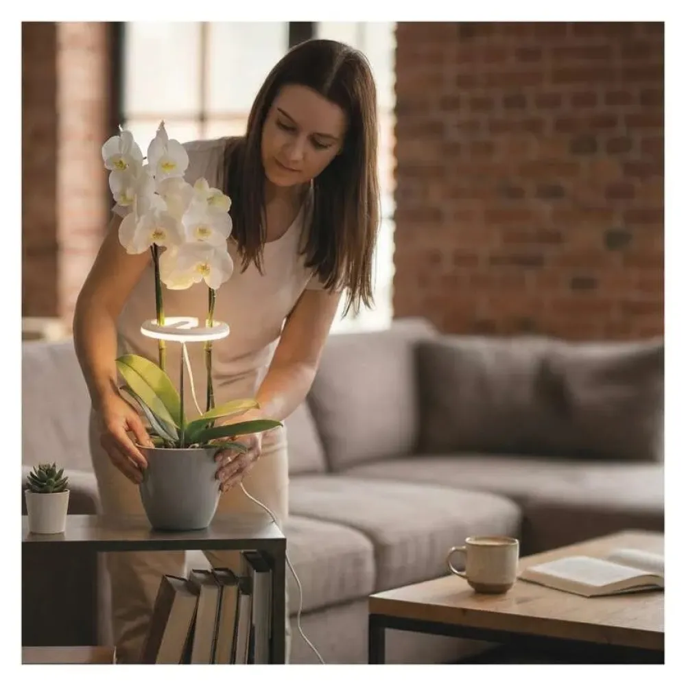 Kruhové svietidlo je navrhnuté tak, aby sa dalo umiestniť aj pod kvety rastliny a osvetľovalo ich jemne zospodu smerom k listom a stonkám. Vďaka tomu poskytuje rastlinám dostatok svetla pre rast bez toho, aby dochádzalo k priamemu prehrievaniu alebo poškodeniu citlivého kvetenstva. Je tak ideálnym riešením pre orchidey a všetky rastliny s citlivým kvetenstvom.