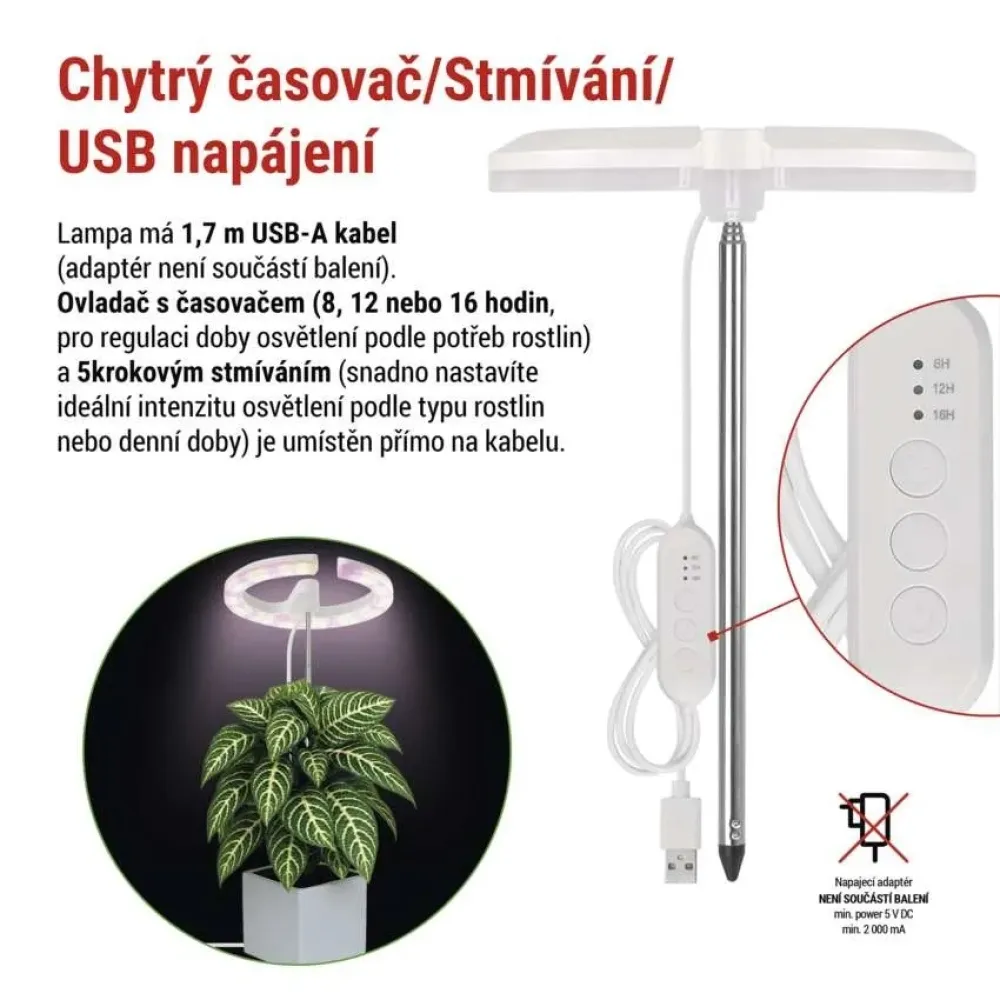 Pestovateľská lampa Z7902 je navrhnutá špeciálne pre citlivé izbové rastliny, ktoré potrebujú jemné, rovnomerné a pritom dostatočne intenzívne svetlo. Vďaka kombinácii plnospektrálneho bieleho a červeného LED svetla poskytuje rastlinám ideálne podmienky pre zdravý rast, bohaté olistenie aj kvitnutie – a to po celý rok, aj na miestach s minimom denného svetla.
