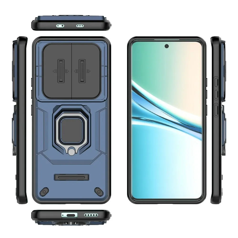Naše odolné puzdro kombinuje v sebe pevnosť kovu, flexibilitu pružného gélu a praktickosť plastu, aby vášmu telefónu poskytlo maximálnu ochranu pred pádmi, škrabancami a ďalším poškodením. Modrá farba dodáva elegantný a moderný vzhľad, zatiaľ čo inovatívny obal s posuvným krytom šošovky fotoaparátu zaisťuje, že vaše fotky budú vždy ostré a bez poškriabania šošovky.