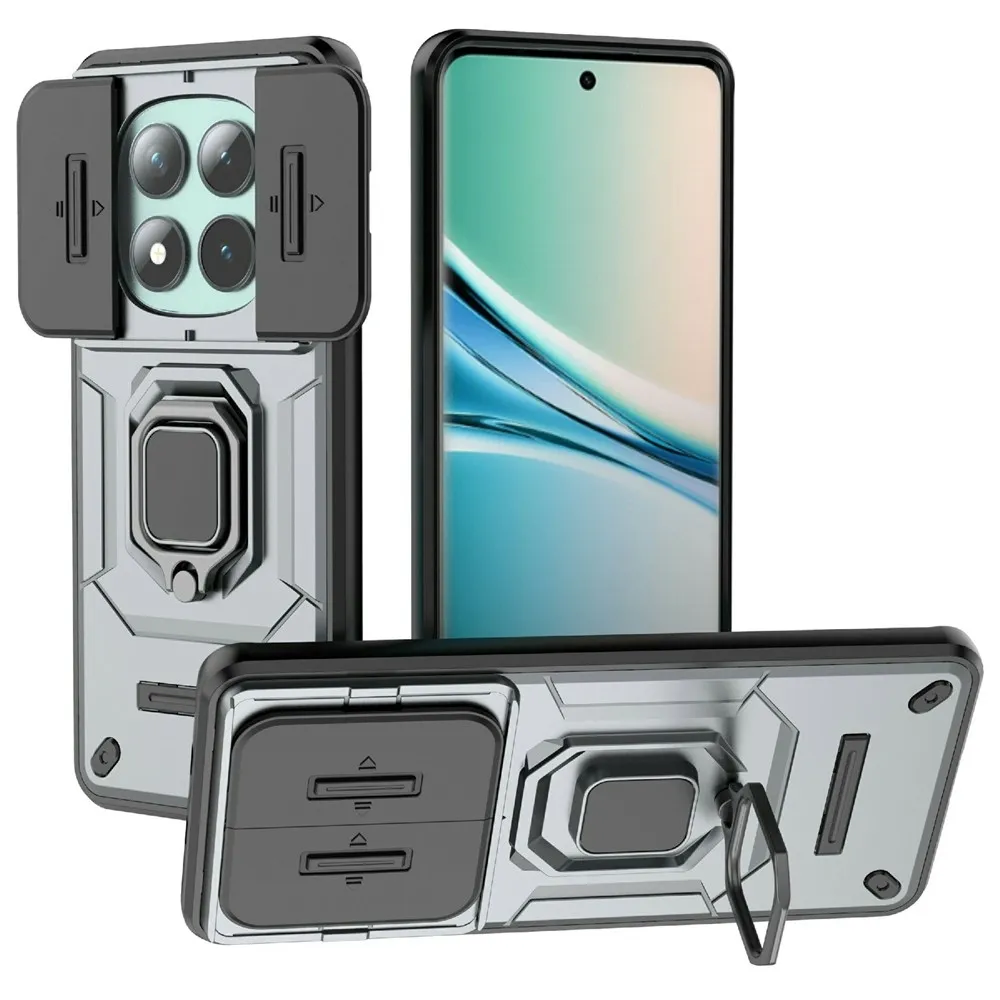 Naše odolné puzdro kombinuje v sebe pevnosť kovu, flexibilitu pružného gélu a praktickosť plastu, aby vášmu telefónu poskytlo maximálnu ochranu pred pádmi, škrabancami a ďalším poškodením. Šedá farba dodáva elegantný a moderný vzhľad, zatiaľ čo inovatívny obal s posuvným krytom šošovky fotoaparátu zaisťuje, že vaše fotky budú vždy ostré a bez poškriabania šošovky.