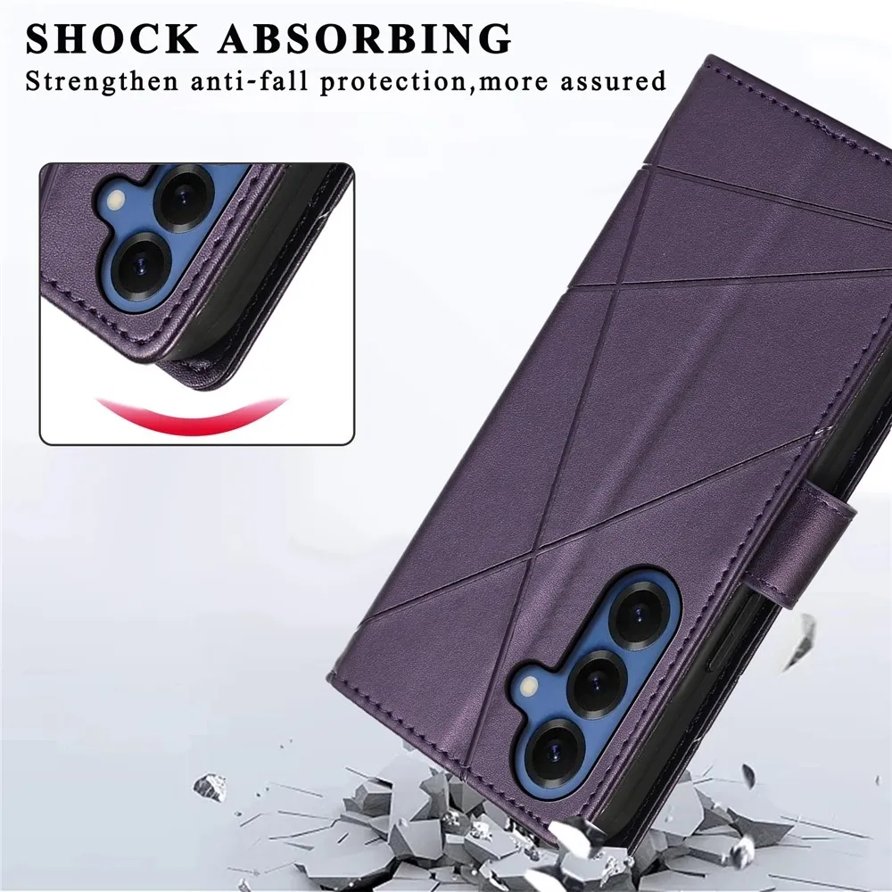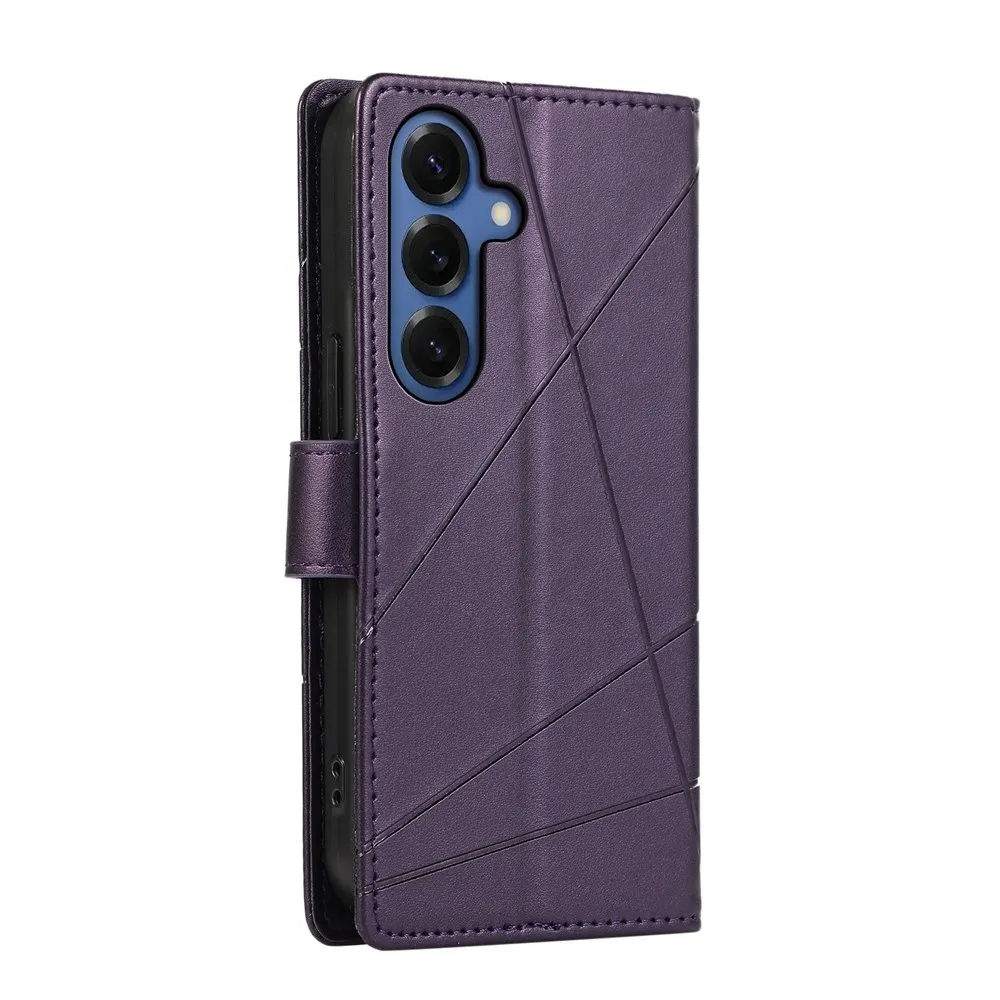 ✅Prémiový materiál: Line knižkové puzdro na mobil Samsung Galaxy S26 vo svetlofialovej farbe je vyrobené z umelej kože s textúrou liniek + matný TPU pružný gél, poskytuje vynikajúcu ochranu proti poškriabaniu, pádom a každodennému opotrebovaniu