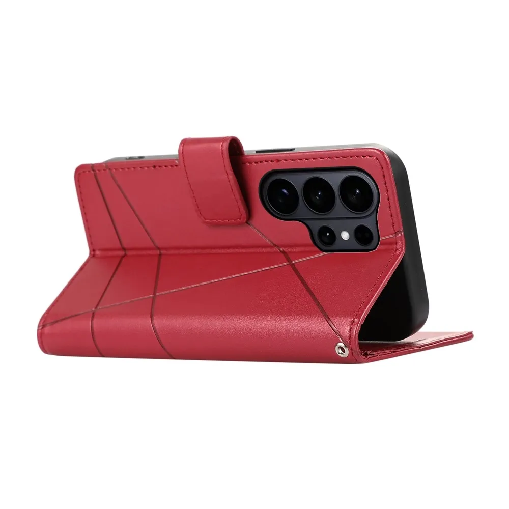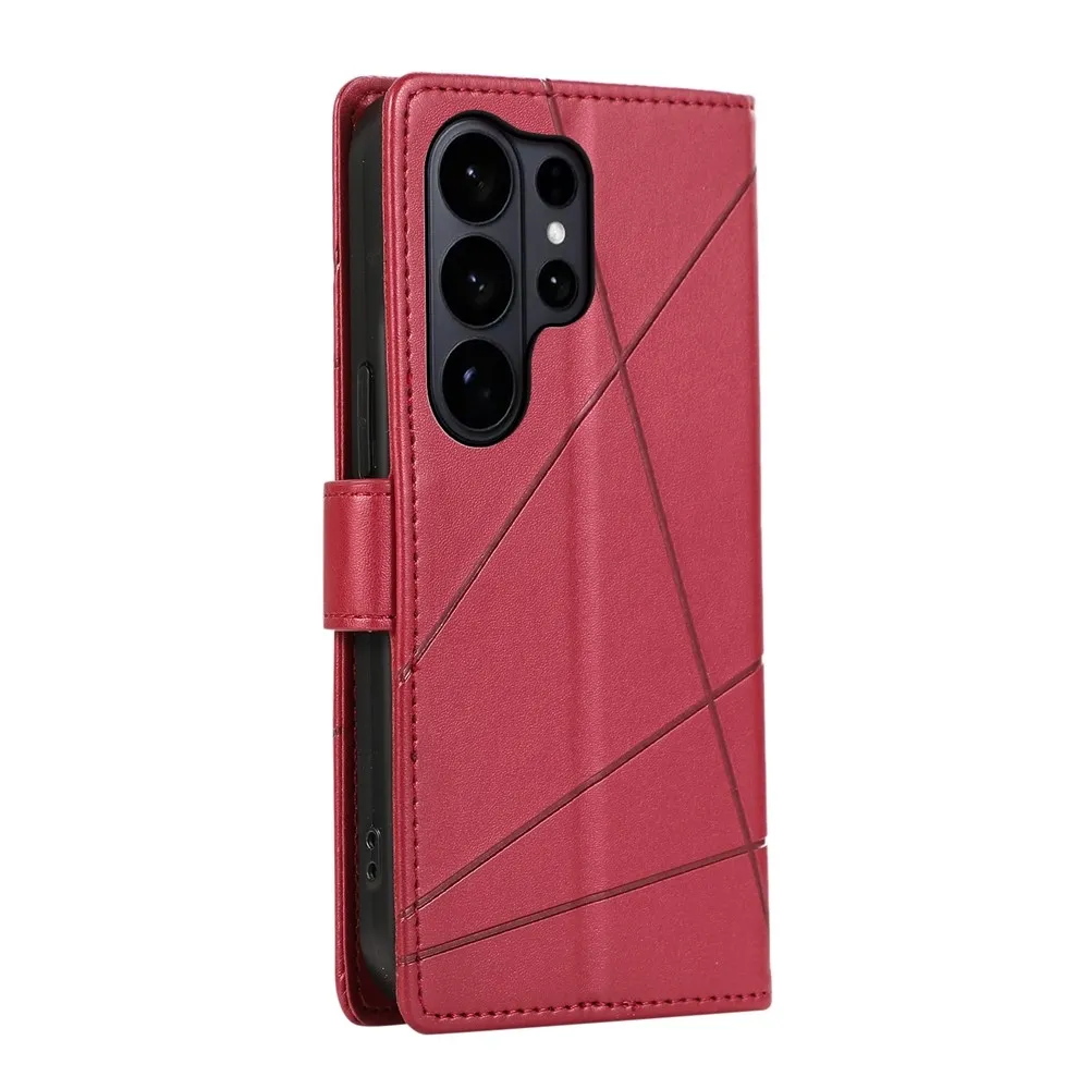 ✅Prémiový materiál: Line knižkové puzdro na mobil Samsung Galaxy S26 Ultra v červenej farbe je vyrobené z umelej kože s textúrou liniek + matný TPU pružný gél, poskytuje vynikajúcu ochranu proti poškriabaniu, pádom a každodennému opotrebovaniu