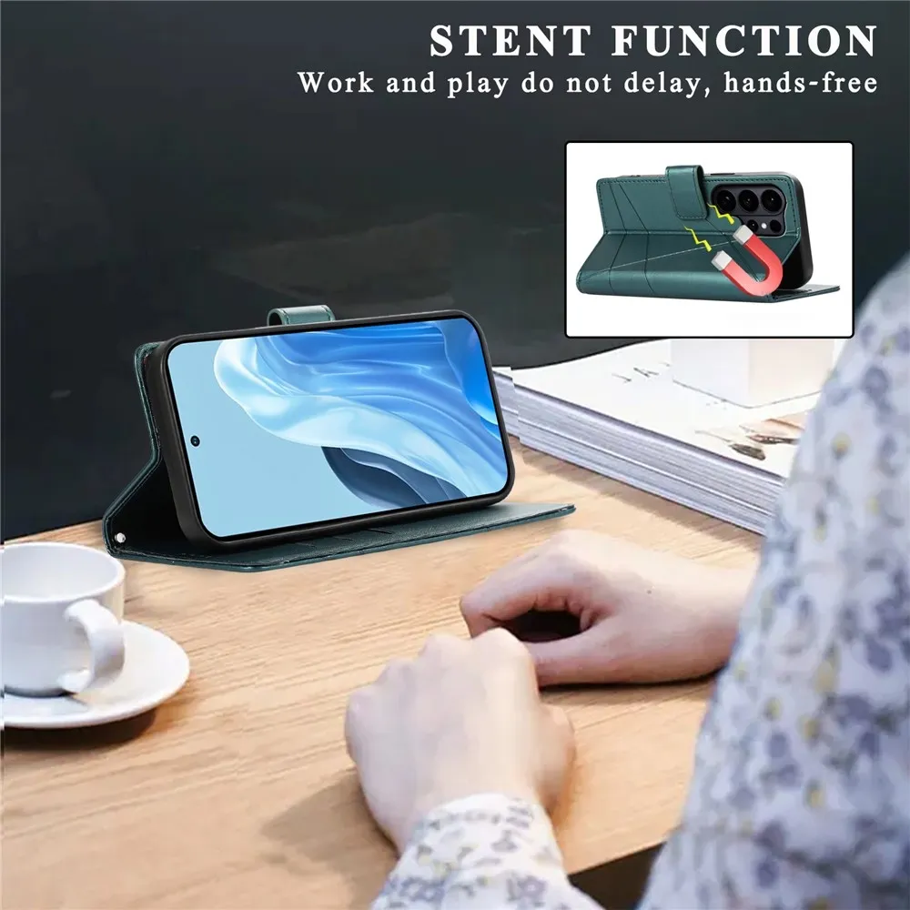✅Prémiový materiál: Line knižkové puzdro na mobil Samsung Galaxy S26 Ultra v zelenej farbe je vyrobené z umelej kože s textúrou liniek + matný TPU pružný gél, poskytuje vynikajúcu ochranu proti poškriabaniu, pádom a každodennému opotrebovaniu