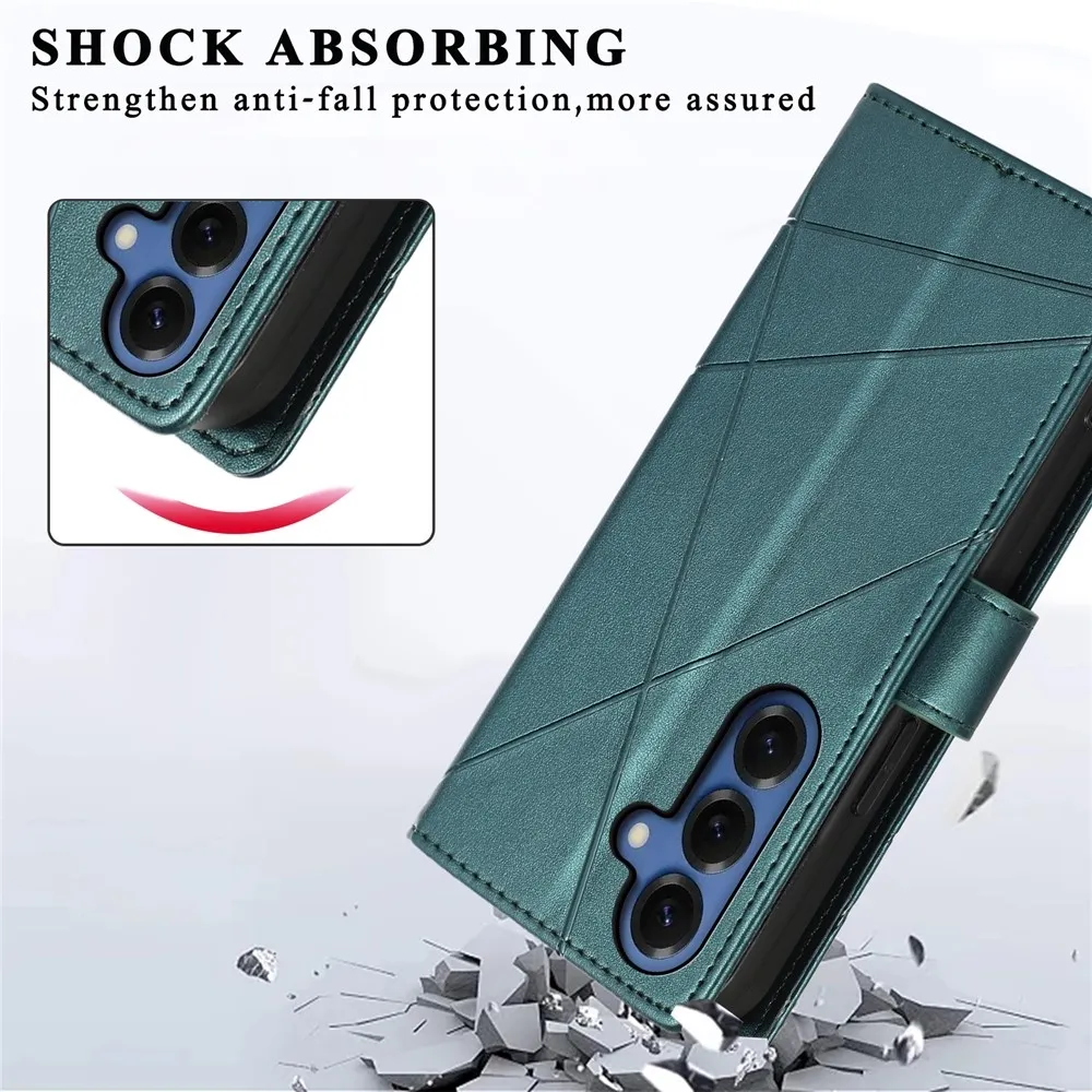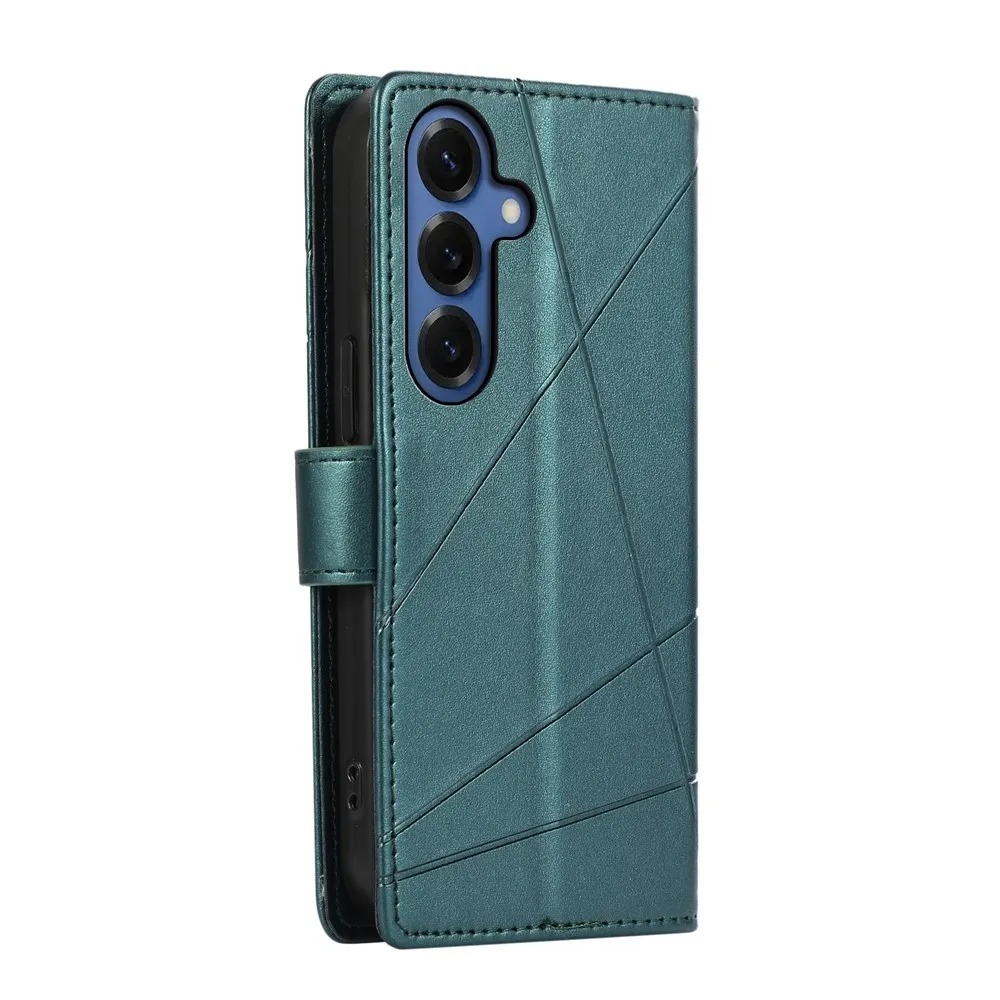 ✅Prémiový materiál: Line knižkové puzdro na mobil Samsung Galaxy S26 v zelenej farbe je vyrobené z umelej kože s textúrou liniek + matný TPU pružný gél, poskytuje vynikajúcu ochranu proti poškriabaniu, pádom a každodennému opotrebovaniu