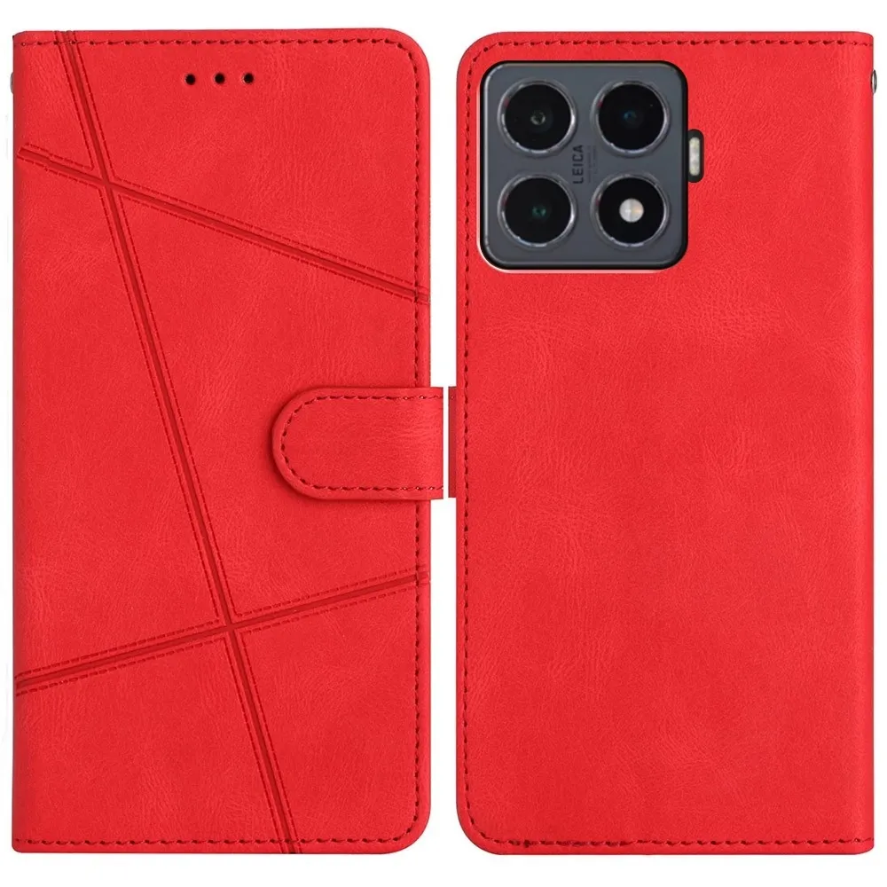 ✅Prémiový materiál: Line knižkové puzdro na mobil Xiaomi 15T Pro v červenej farbe je vyrobené z umelej kože s textúrou liniek + matný TPU pružný gél, poskytuje vynikajúcu ochranu proti poškriabaniu, pádom a každodennému opotrebovaniu
