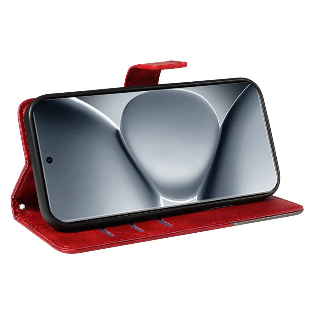 Červené peňaženkové puzdro Lines na mobil Xiaomi Redmi Note 15 Pro+ 5G