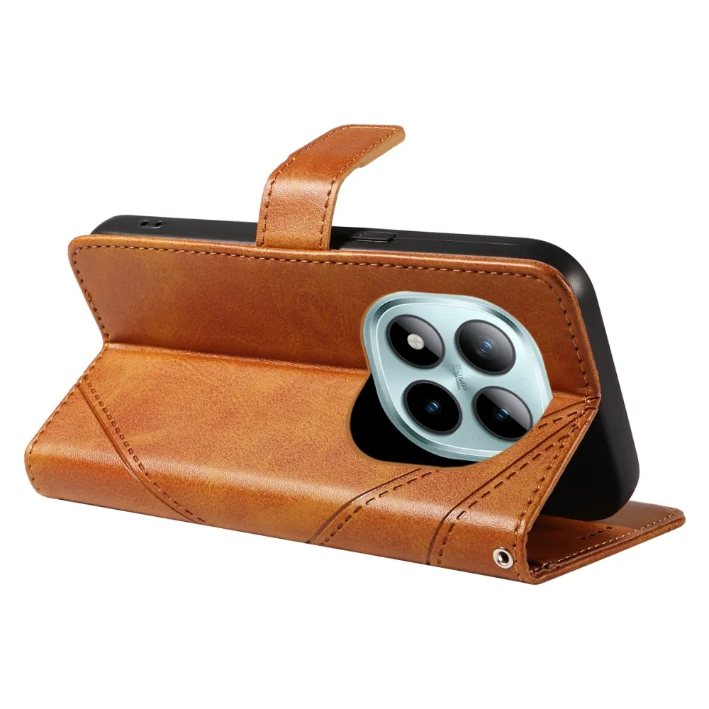 Hnedé peňaženkové puzdro Lines na mobil Xiaomi Redmi Note 15 Pro+ 5G