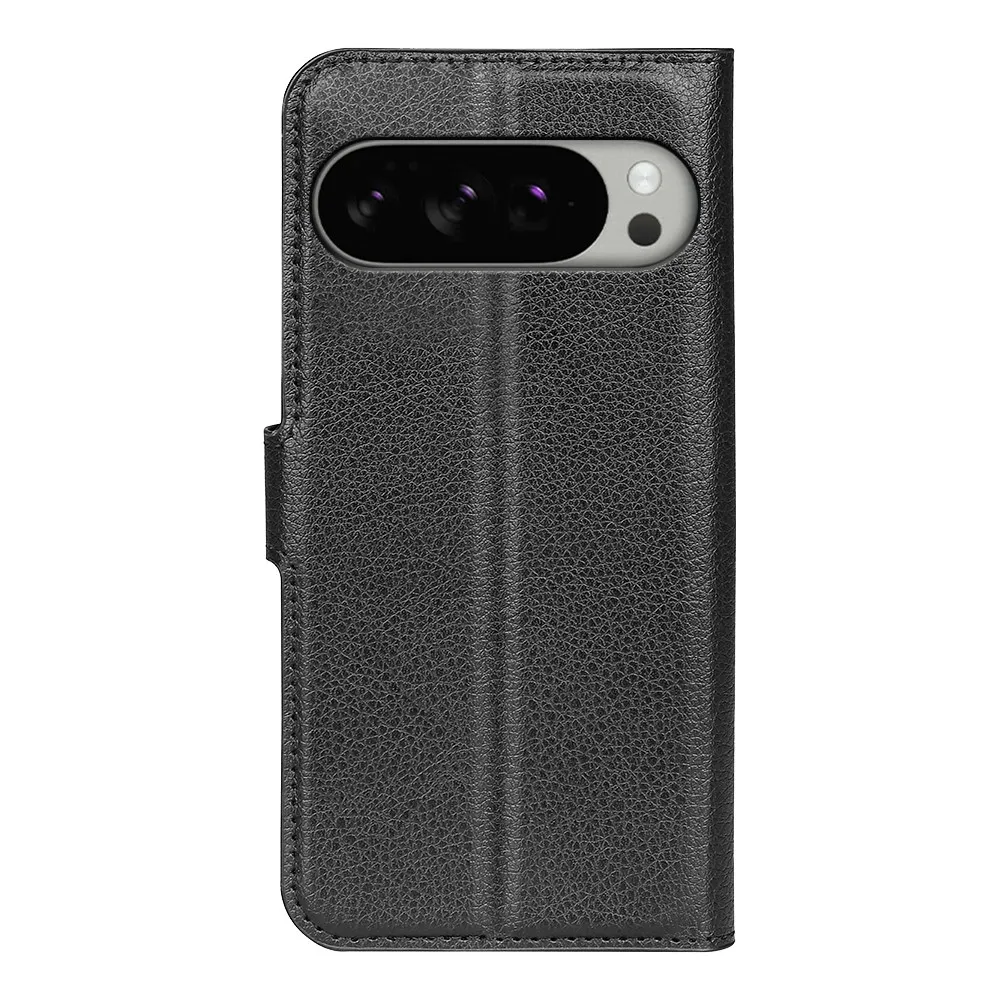Čierne peňaženkové puzdro Litchi na mobil Google Pixel 10 Pro XL