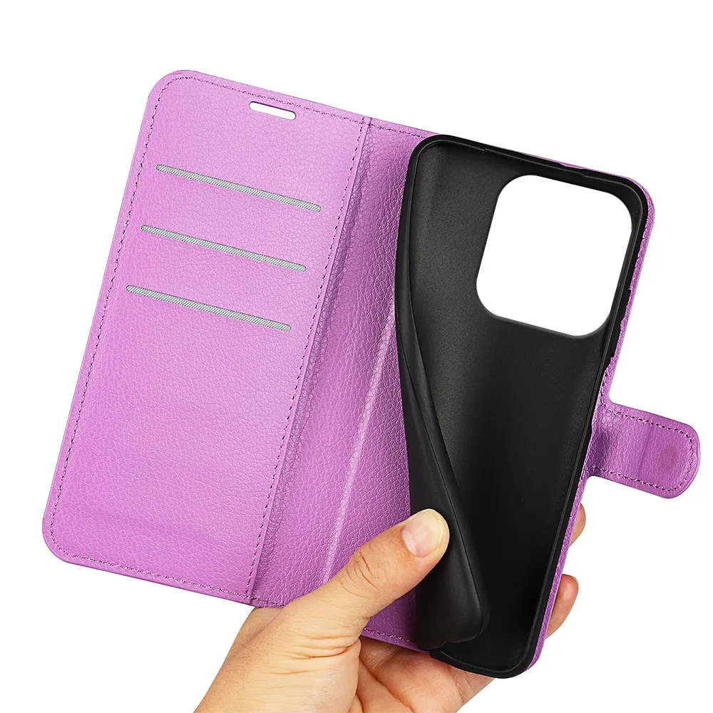 Peňaženkové puzdro Litchi z vysoko kvalitnej syntetickej kože poskytne prístroju skvelú ochranu proti poškriabaniu a rozbitiu pri páde či náraze.